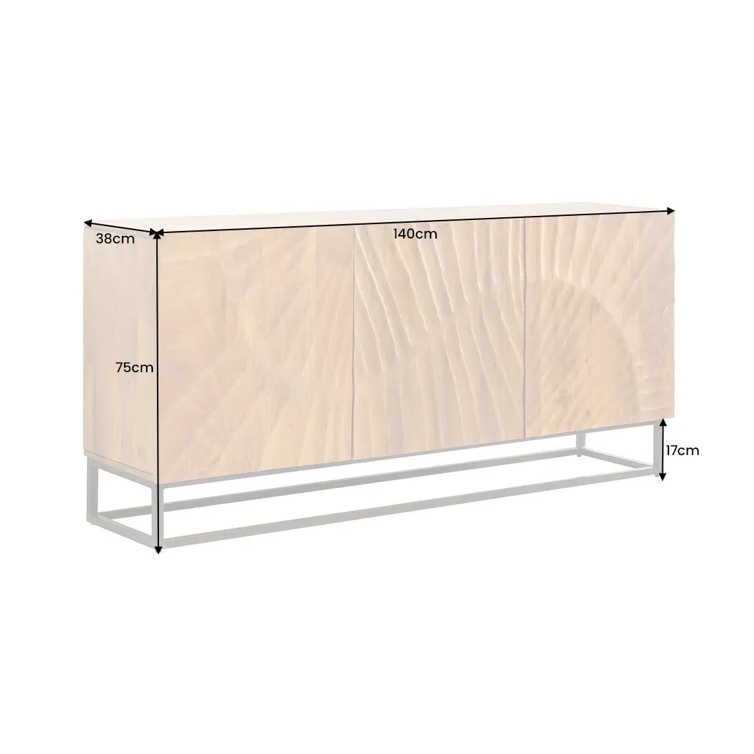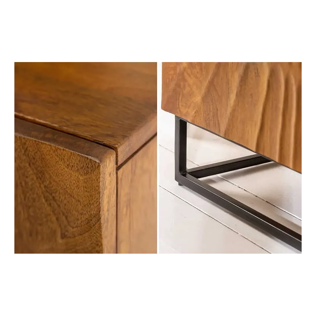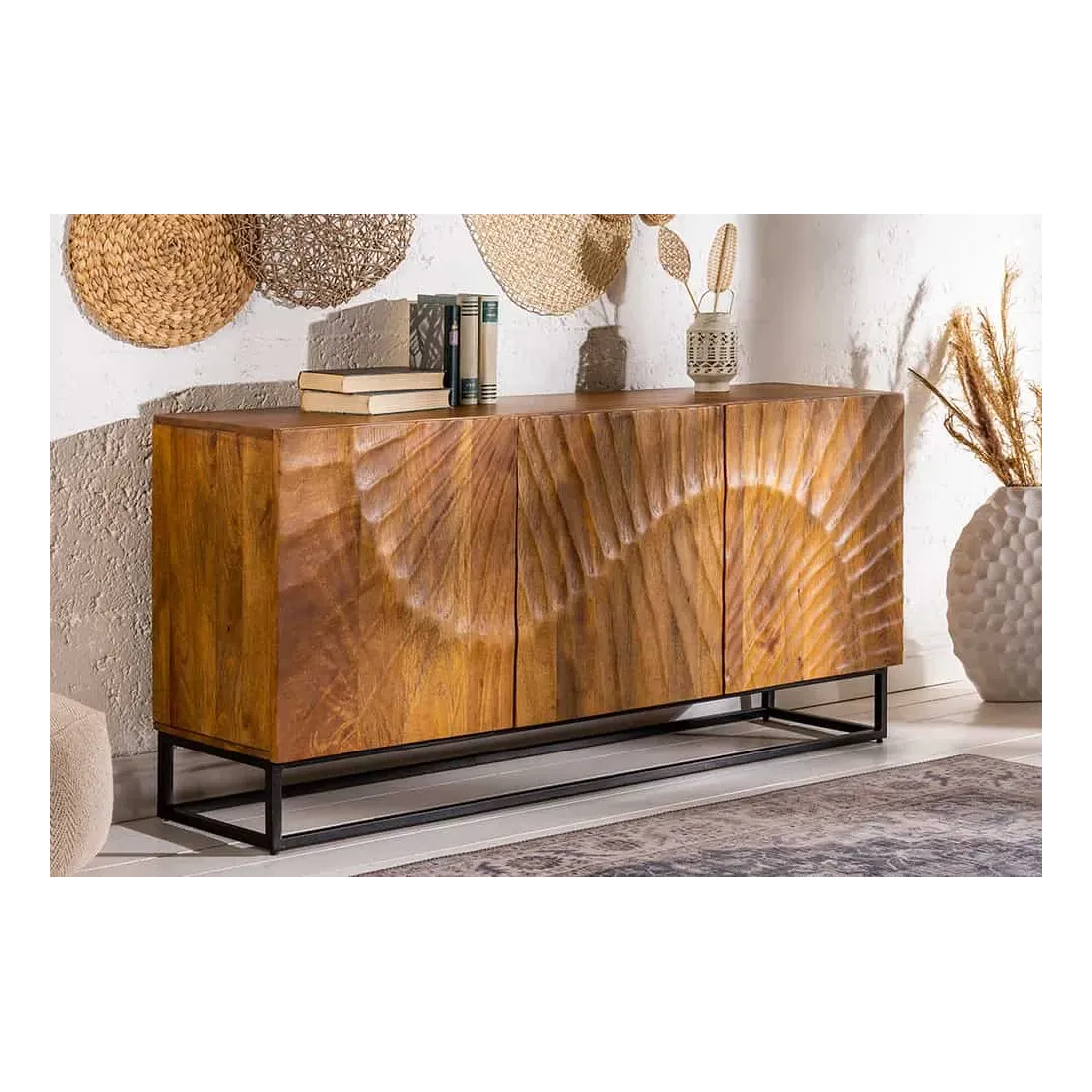 Buffet SCORPION 140 cm – Bois massif de manguier brun, piètement métal noir, façades sculptées 3D