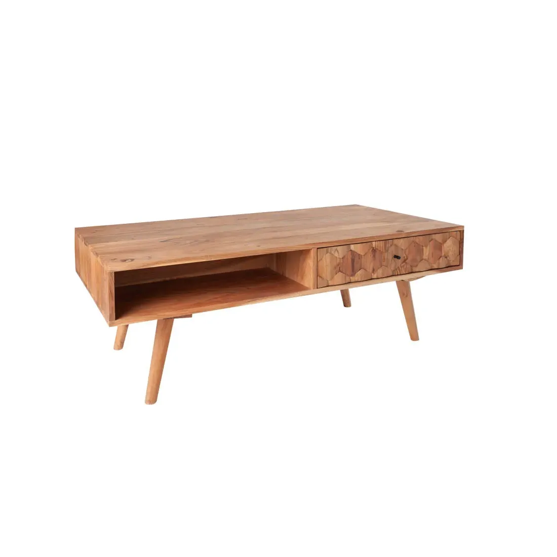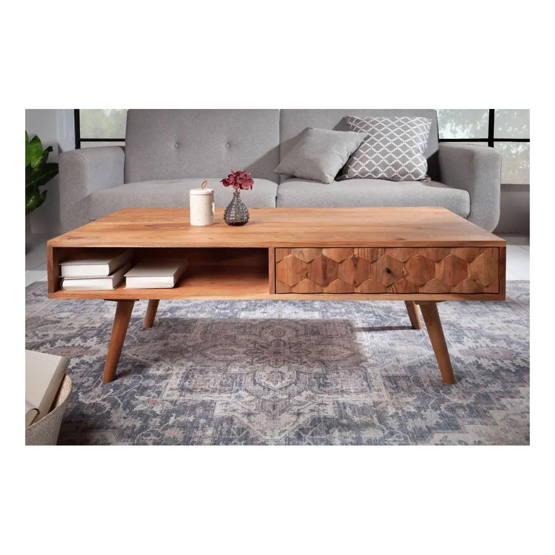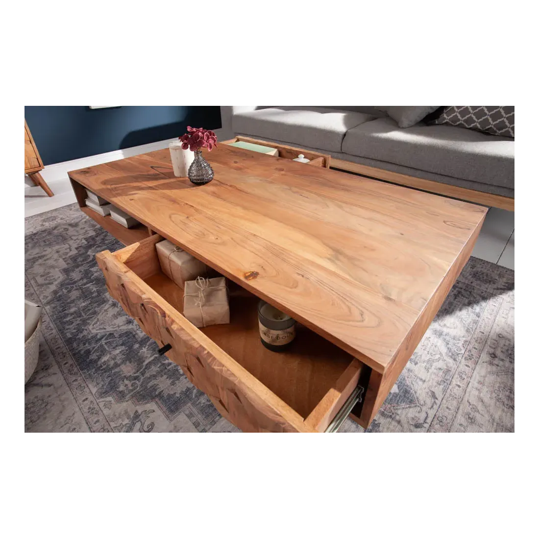 Table basse en bois massif MYSTIC salon 100 cm – Naturel Akazie avec rangement