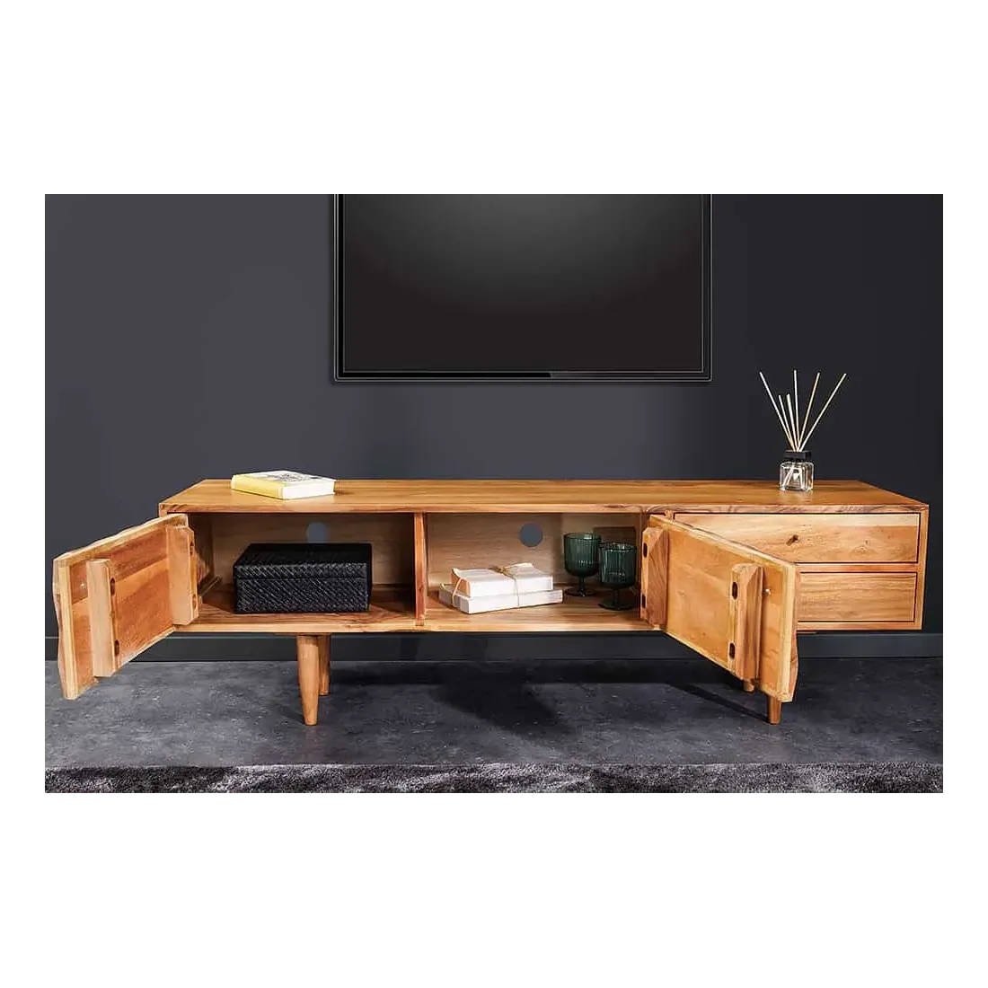 Apportez une touche d'élégance et de chaleur à votre intérieur avec le meuble TV ALPINE en bois massif d'acacia. Connu pour sa robustesse et sa durabilité, l’acacia est un bois noble qui confère à ce meuble une allure authentique et intemporelle.