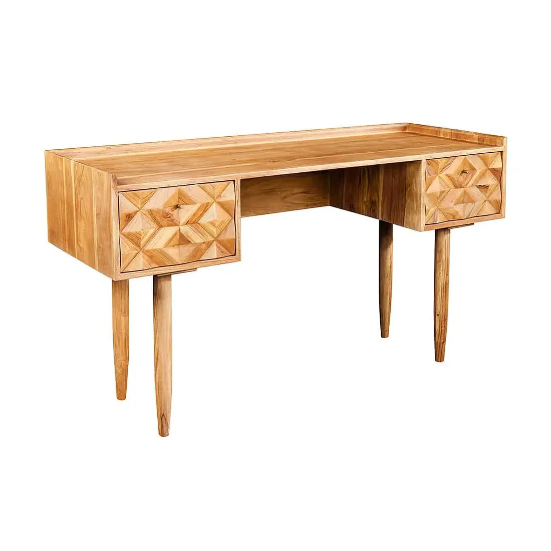 Bureau en bois massif d’Acacia 135 cm – Finition Miel avec tiroirs de rangement & design rétro