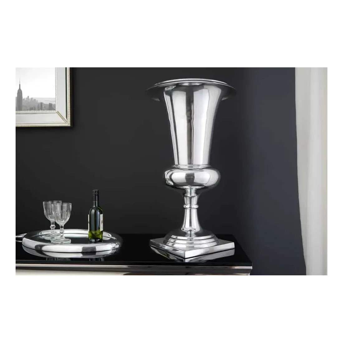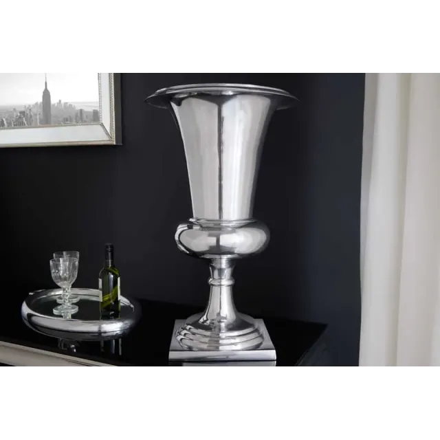 Vase design GOAL 60 cm – Vase ou cache-pot en aluminium poli argenté