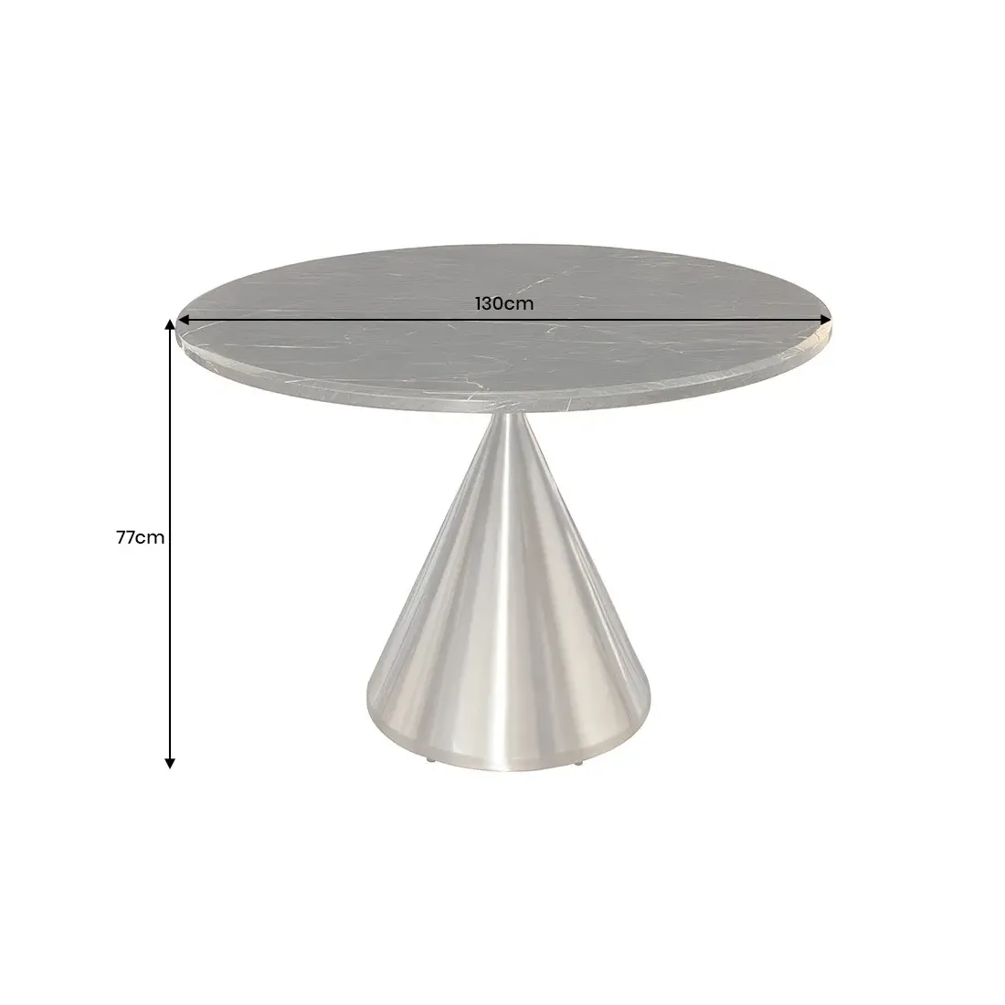 Matériau : Plateau en gussmarmor (marbre coulé) / Pied en acier brossé chromé