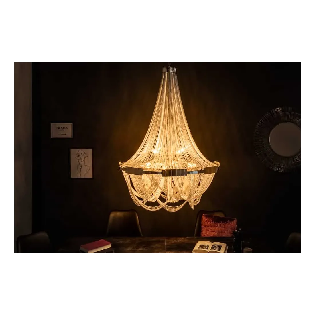 Lustre ROYAL XL 70 cm – Suspension argentée en chaînes métalliques, 6 ampoules E14