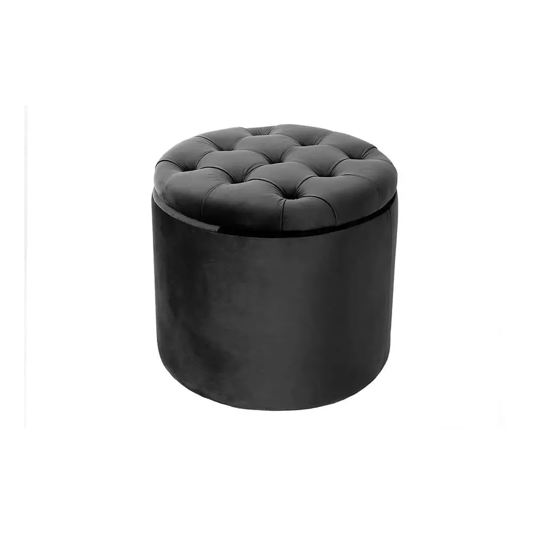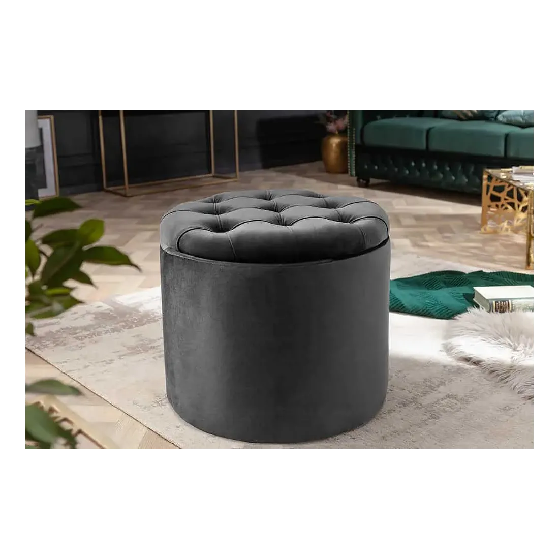 Pouf rond moderne baroque 50 cm – Velours gris avec rangement intégré