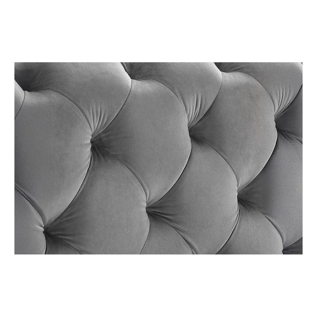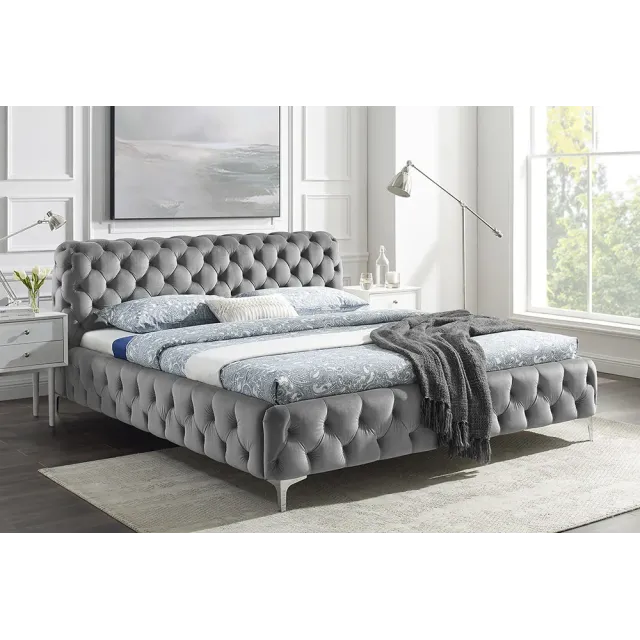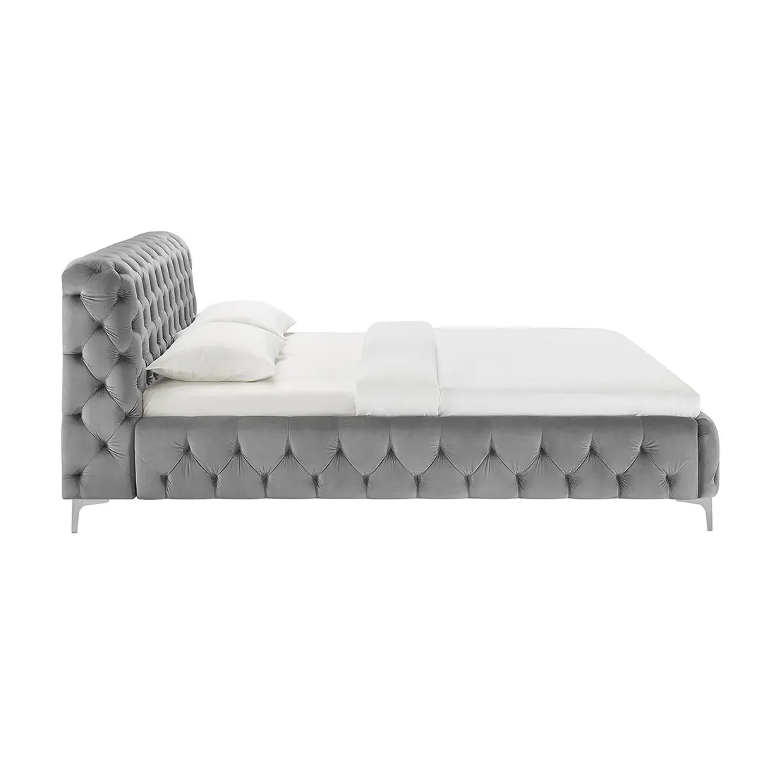 Lit double MODERN BAROCK 180x200 cm – Velours gris Chesterfield avec pieds argentés