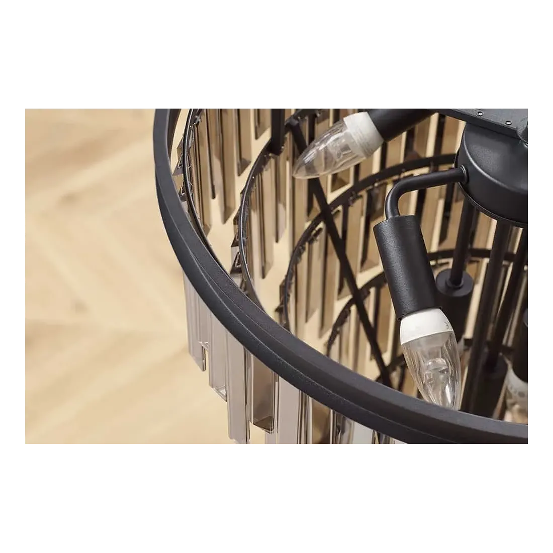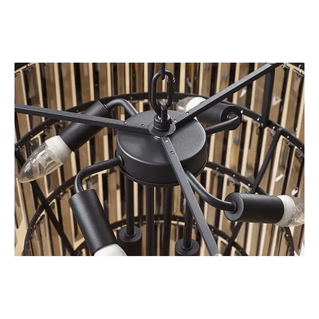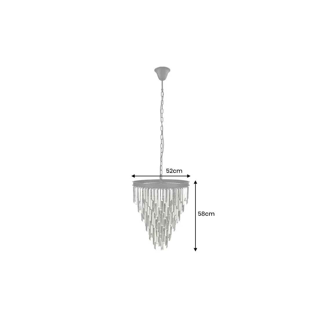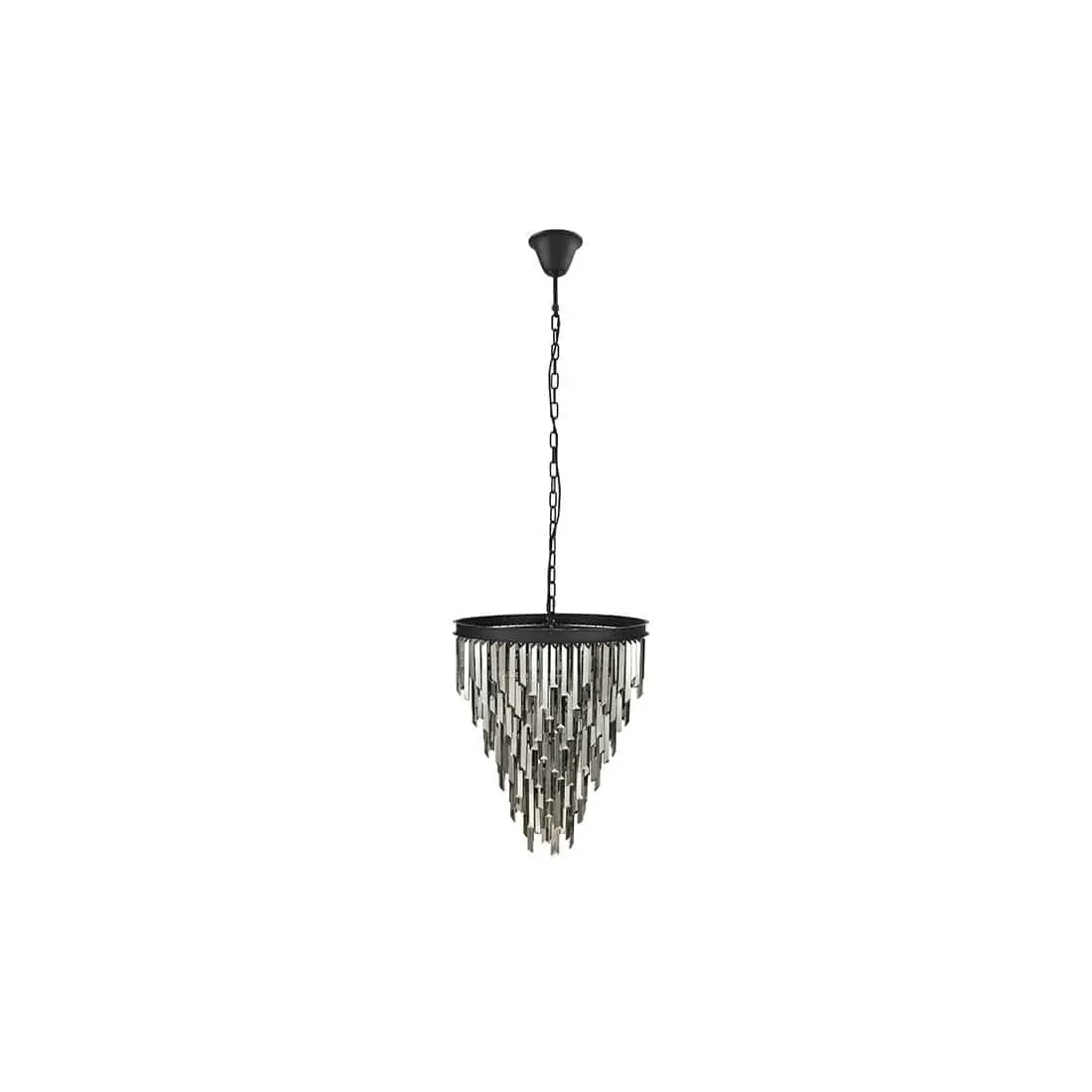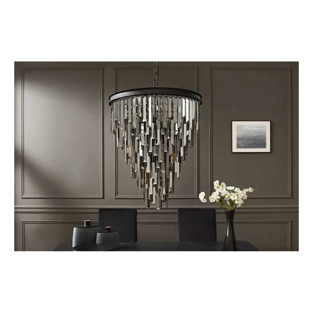 Le lustre KRISTALL combine design moderne et charme classique. Les prismes en verre gris créent des reflets lumineux élégants, tandis que la structure en métal noir assure un style contemporain et robuste.