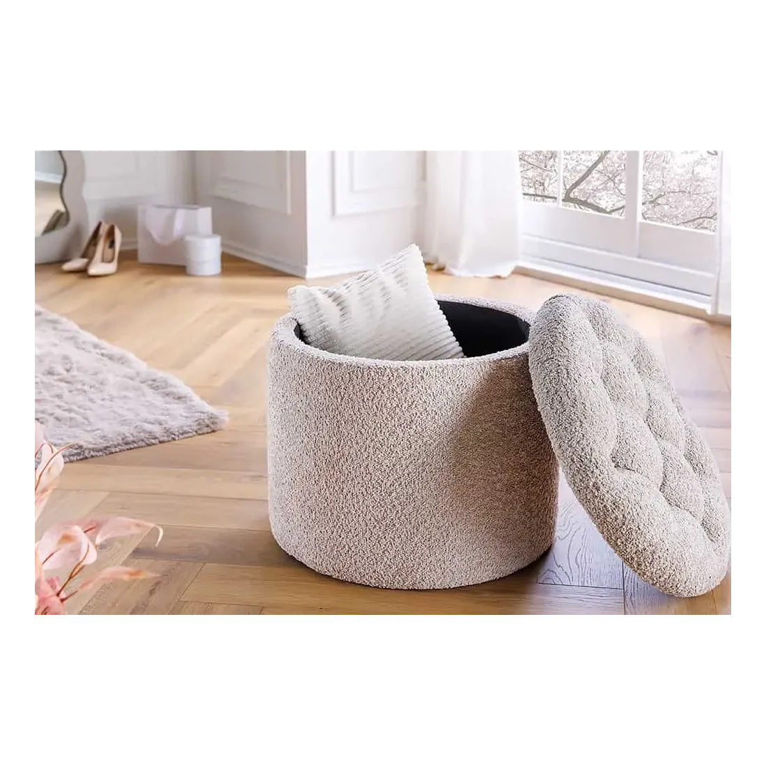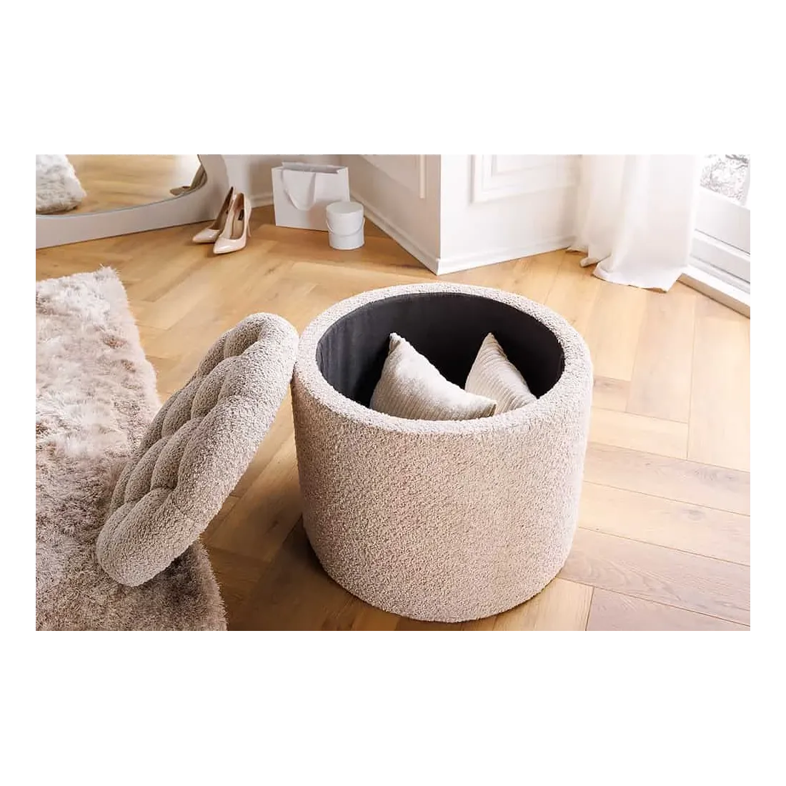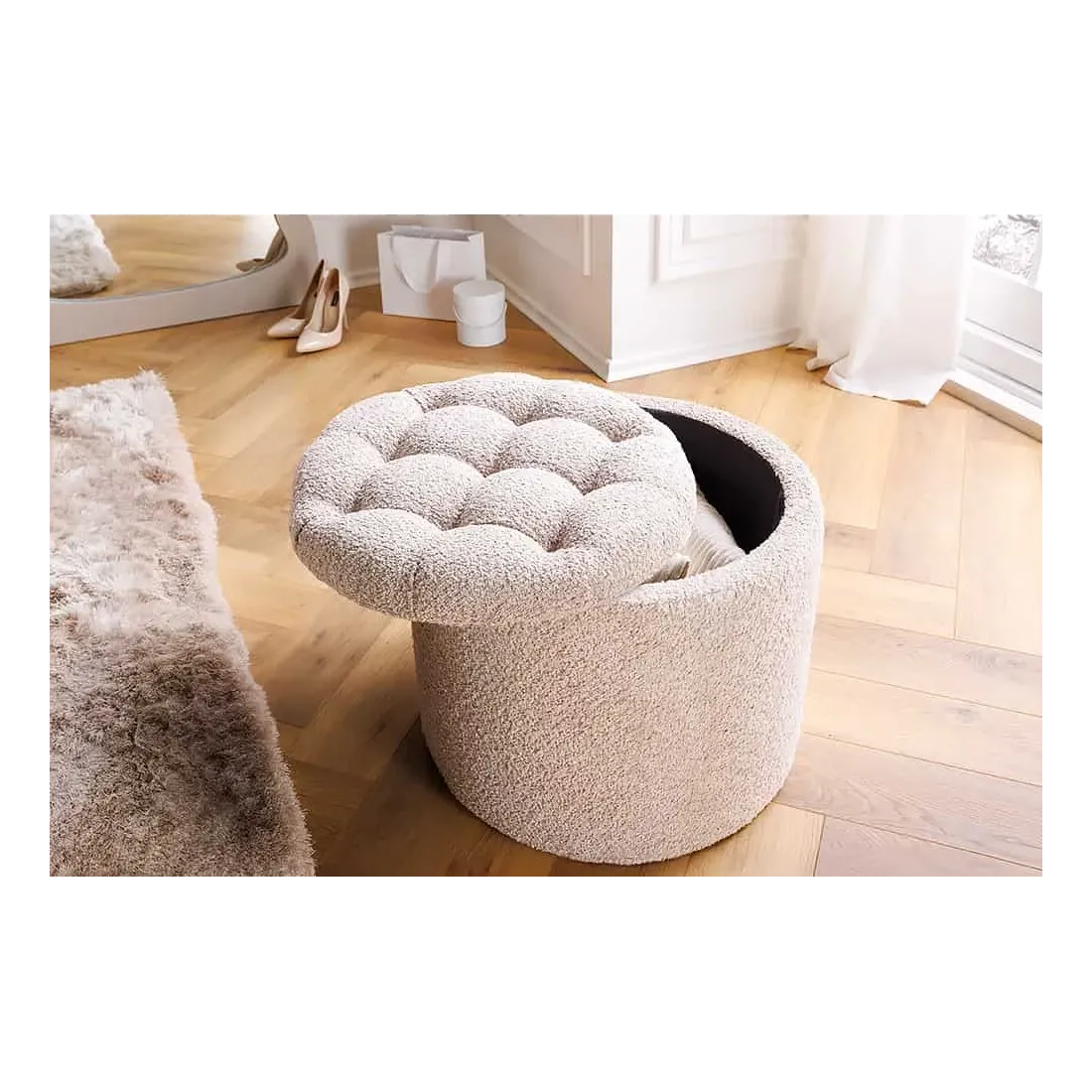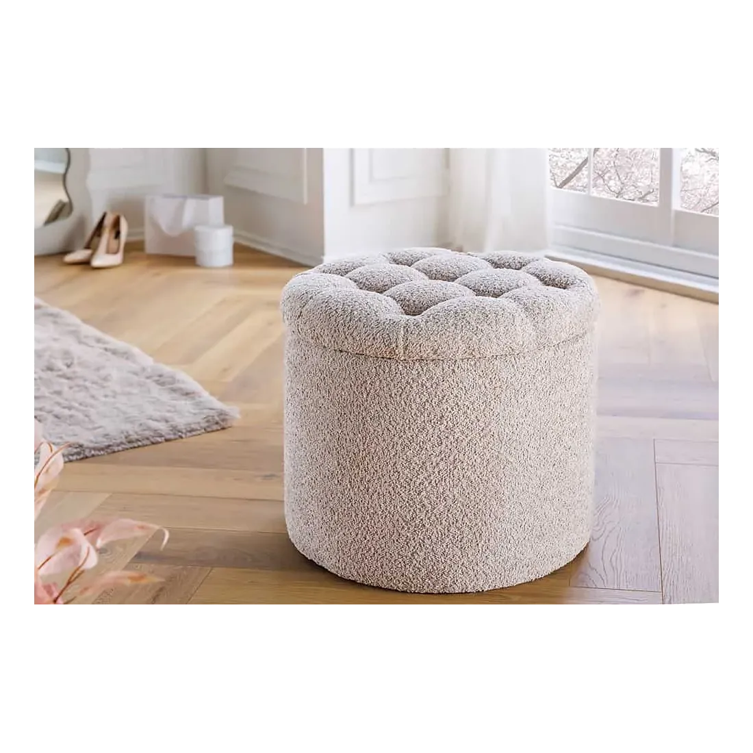 Pouf MODERN BAROCK 50cm – Pouf design champagner Bouclé avec espace de rangement