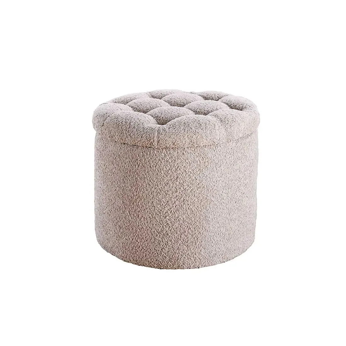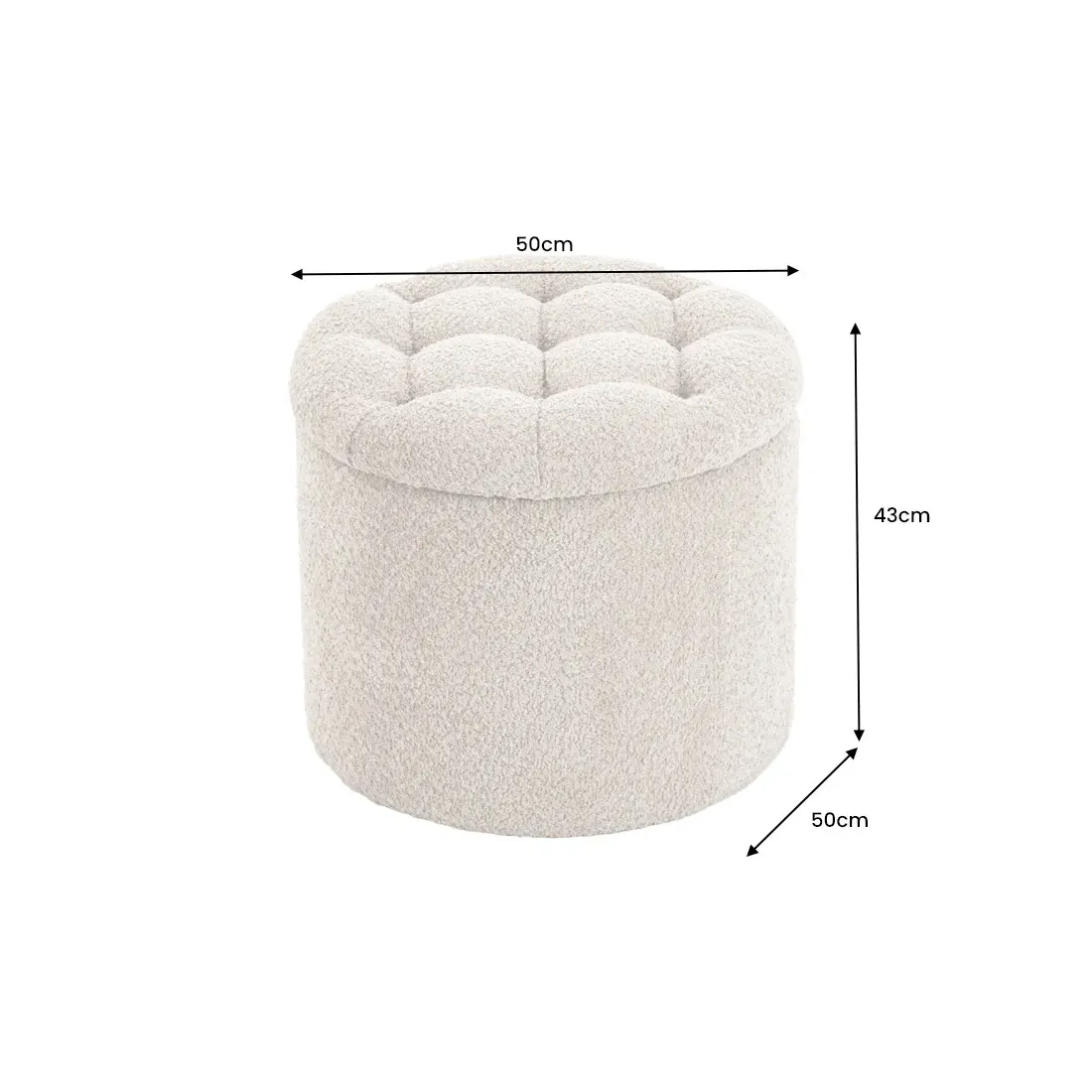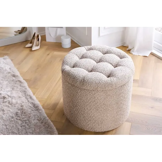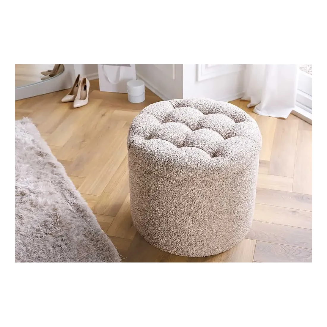 Pouf MODERN BAROCK 50cm – Pouf design champagner Bouclé avec espace de rangement