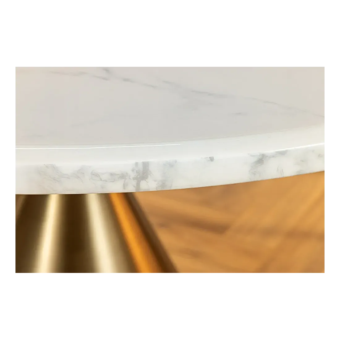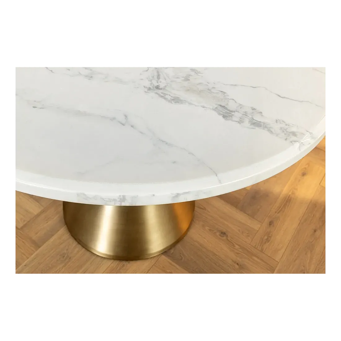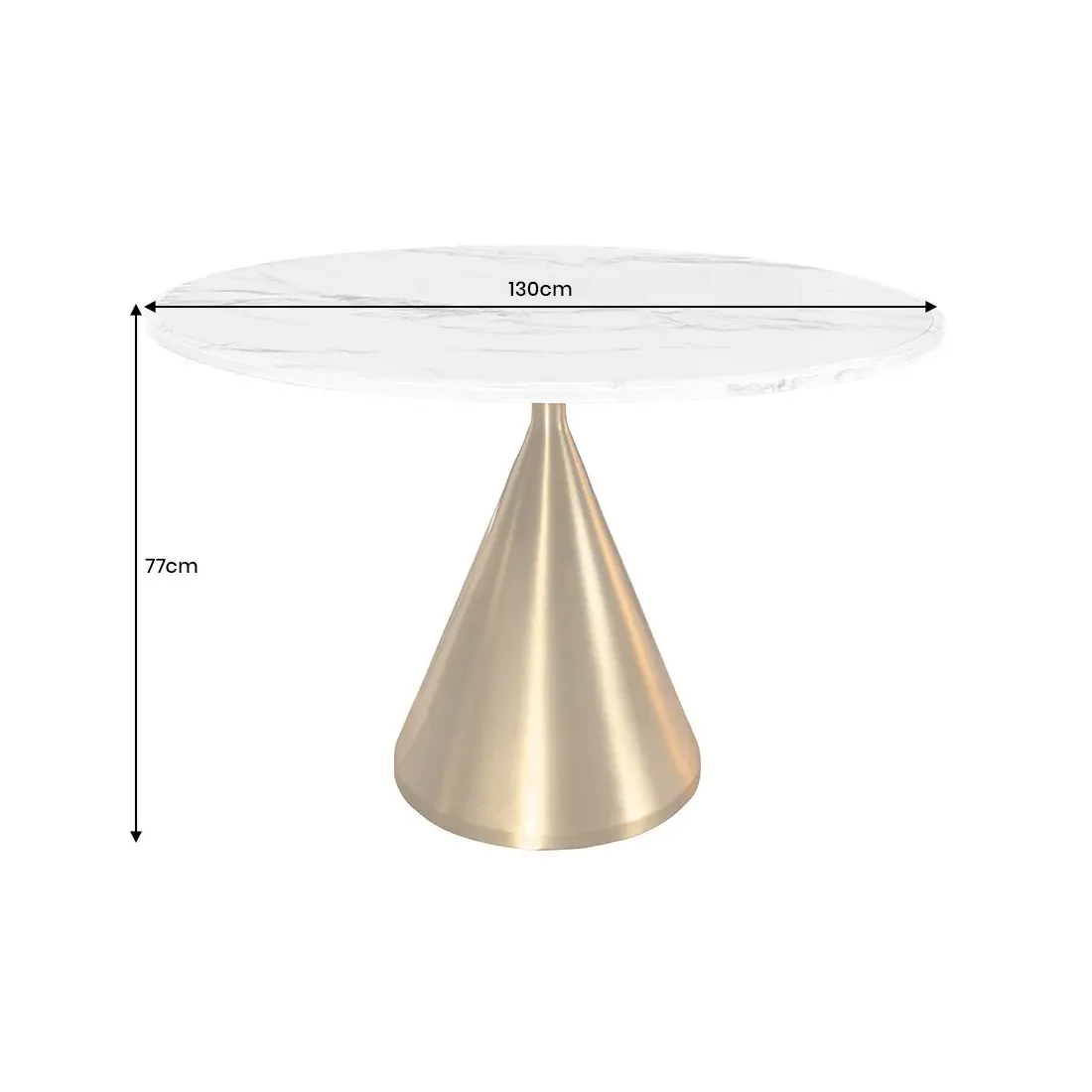 Runder Esstisch ELEGANCIA 130cm – Table ronde en marbre blanc avec pied colonne métal doré champagne