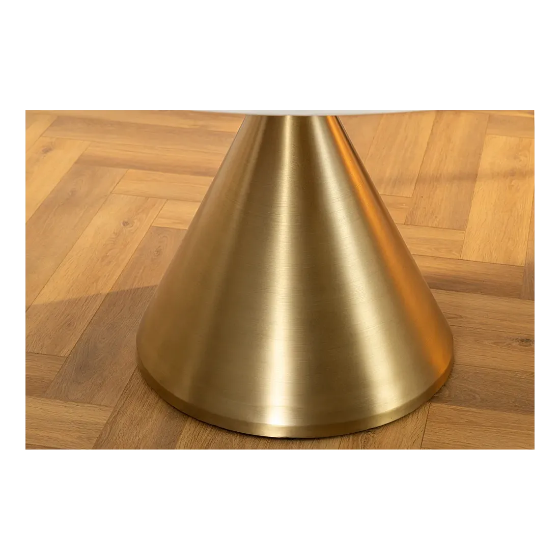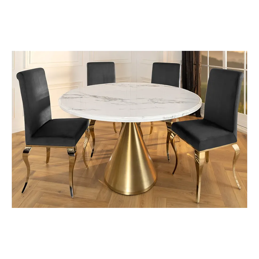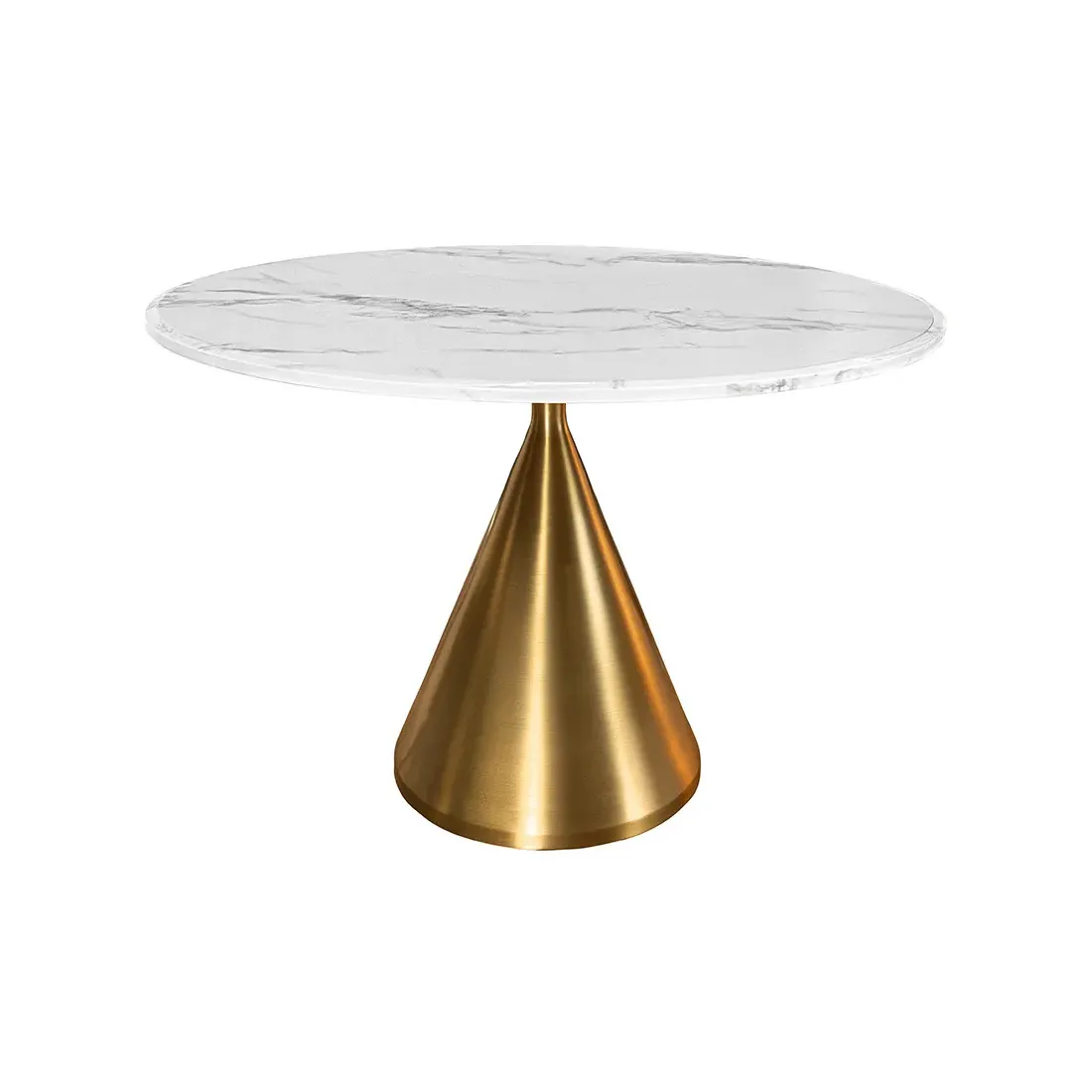 Runder Esstisch ELEGANCIA 130cm – Table ronde en marbre blanc avec pied colonne métal doré champagne