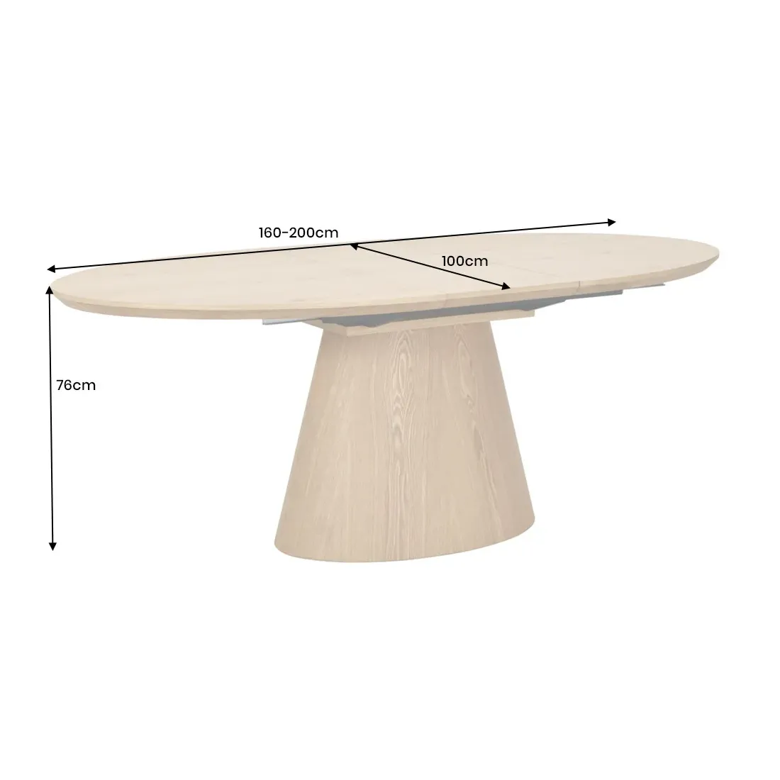 Table à manger extensible UNIQUE 160–200 cm – Chêne naturel avec pied central au design élégant