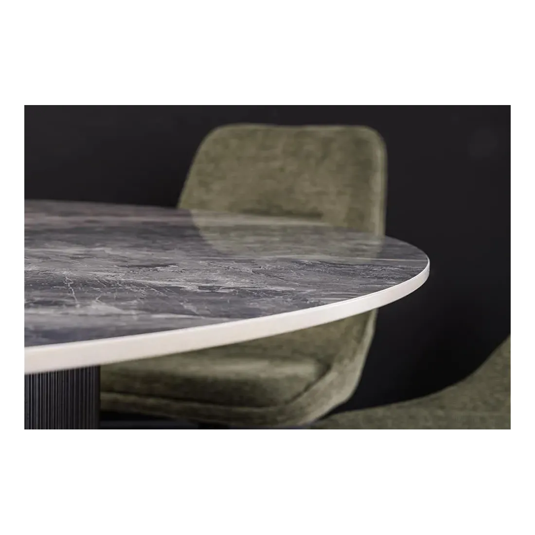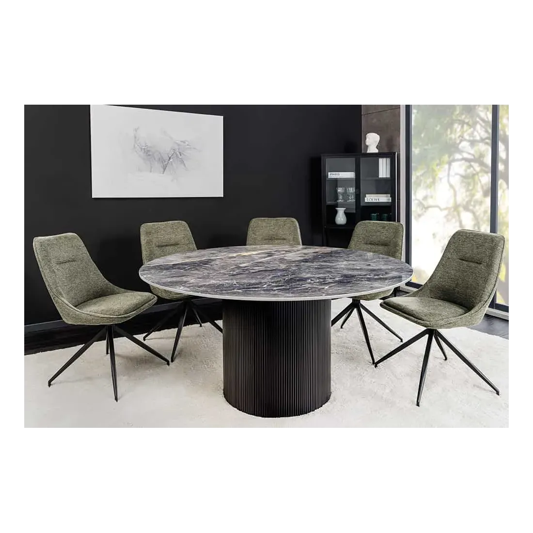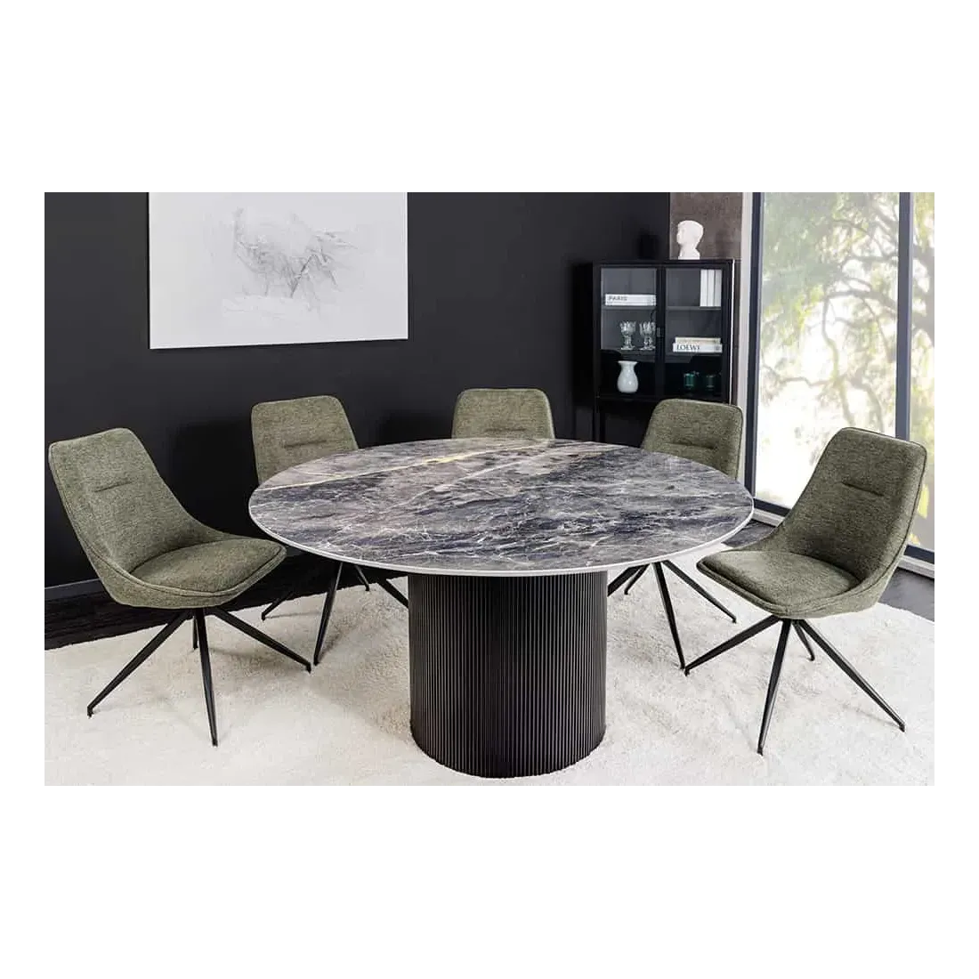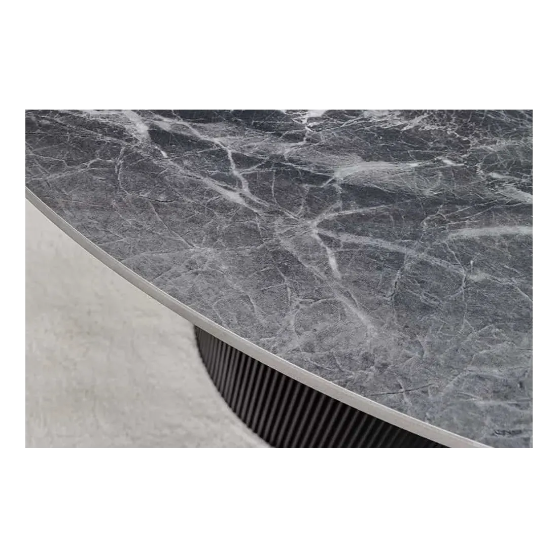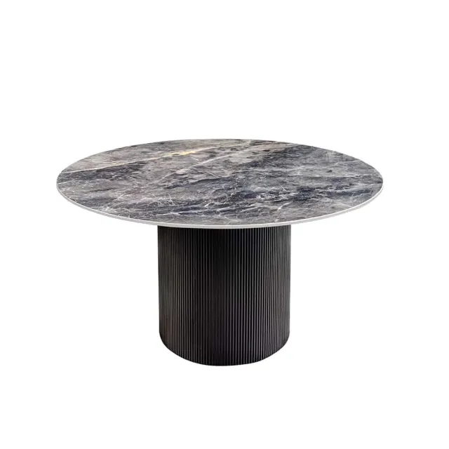 La table ronde UNIQUE (Ø120 cm) est idéale pour les repas conviviaux. Son plateau en céramique noir effet marbre est à la fois élégant, résistant aux rayures et facile à entretenir, tandis que son pied colonne central assure stabilité et confort d’assise.