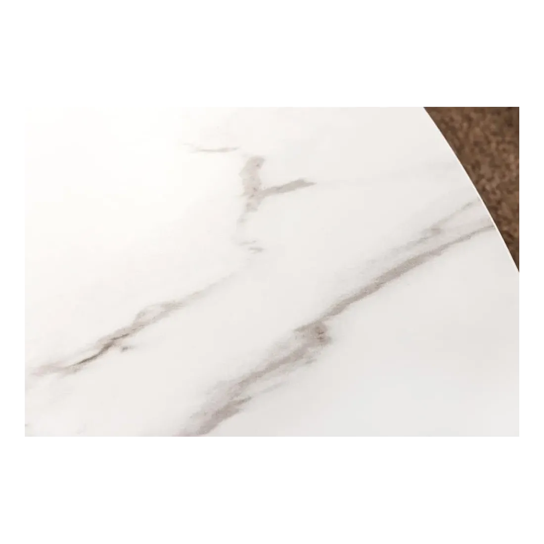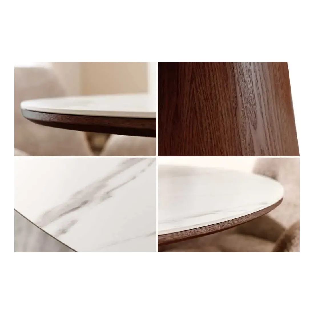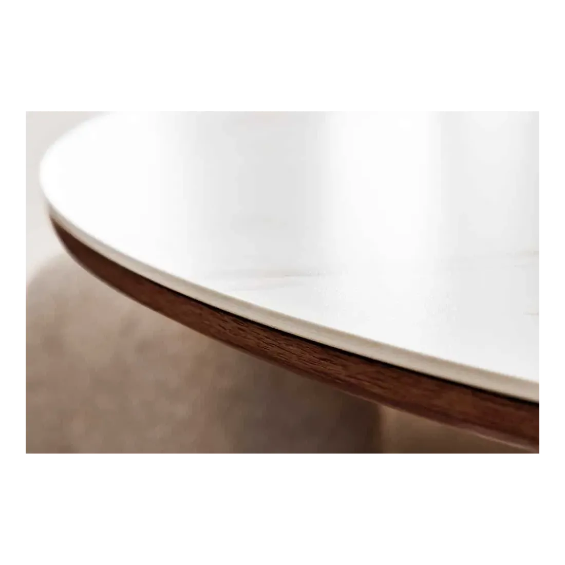 Matériaux : Plateau en céramique, piètement en placage noyer véritable
