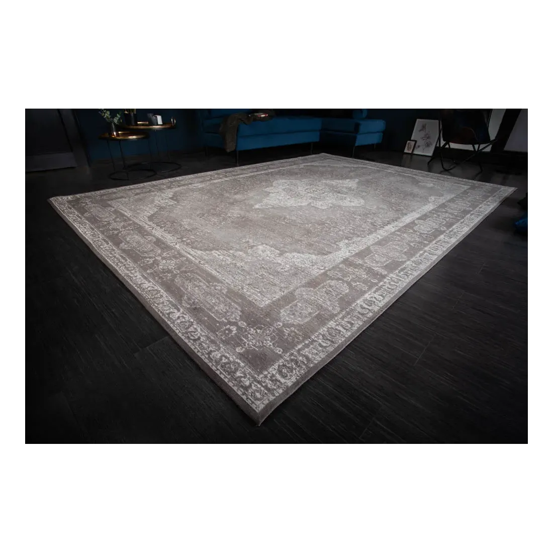 Tapis oriental PURE UNIQUE XXL 350x240 cm – Coton gris antique avec motifs géométriques élégants