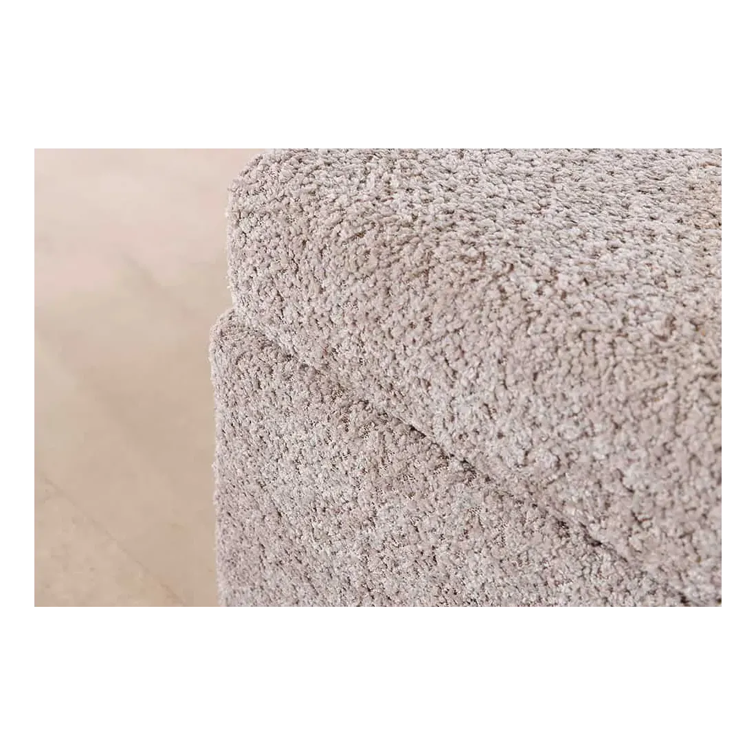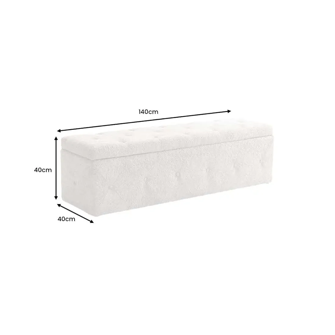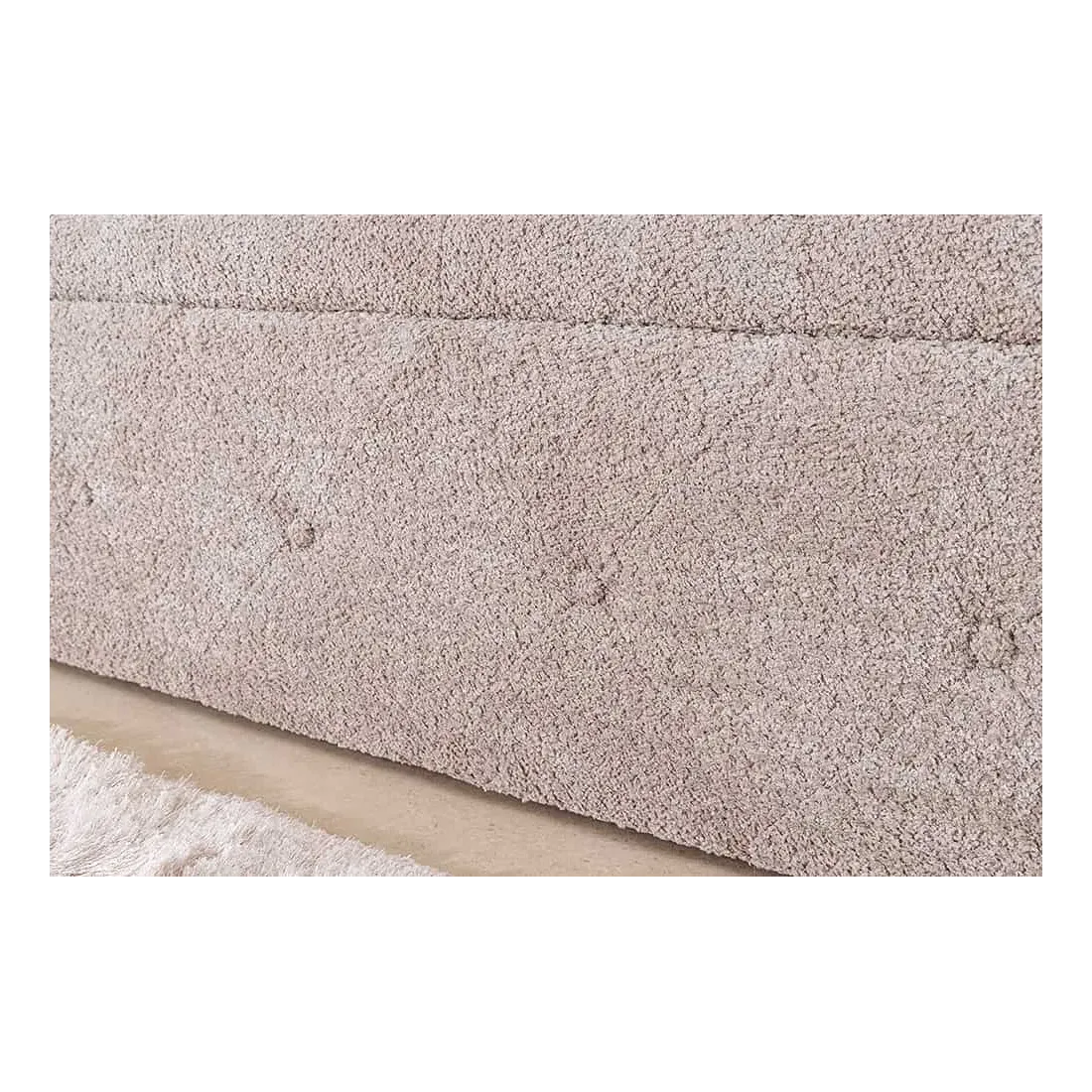 Son revêtement en tissu bouclé (100 % polyester), dans une teinte douce champagner greige, offre un toucher agréable et une allure cosy. Les coutures capitonnées façon Chesterfield lui donnent un style classique chic, idéal pour sublimer le pied de lit, un dressing ou même un couloir.