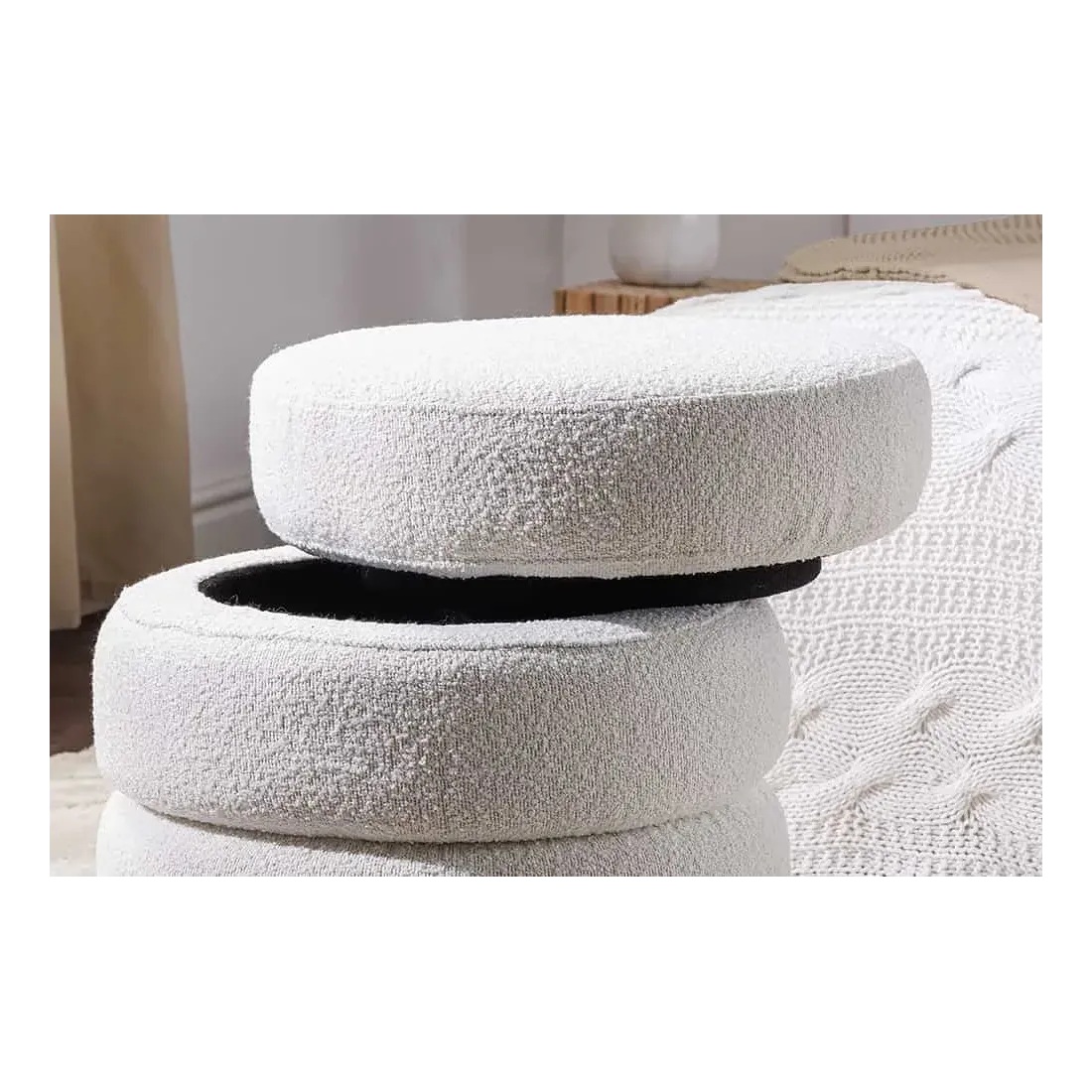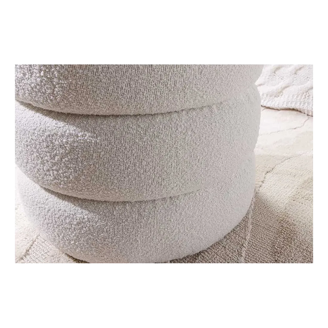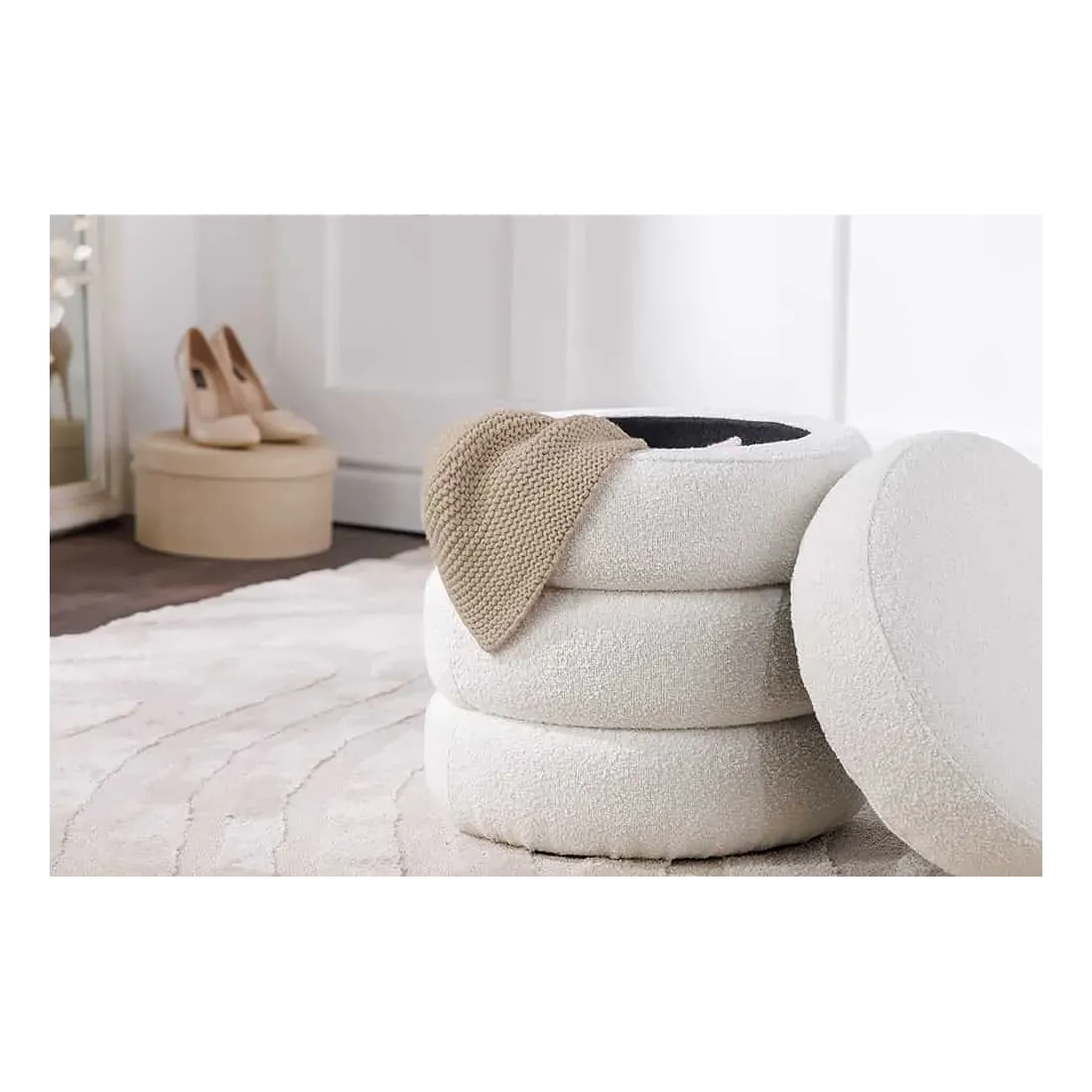 Pouf rond VOGUE 50 cm – Tissu bouclé crème blanc avec espace de rangement intégré
