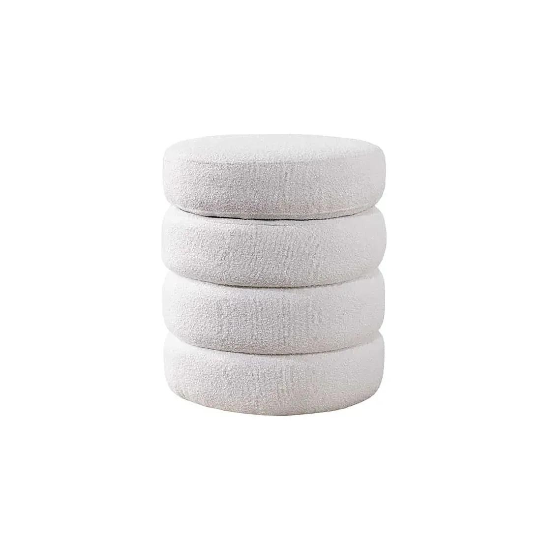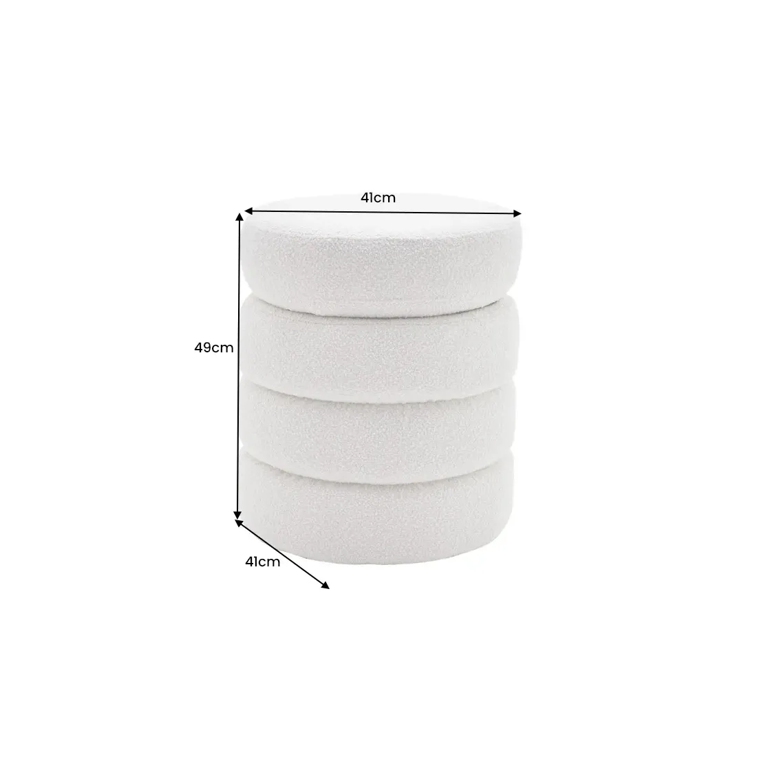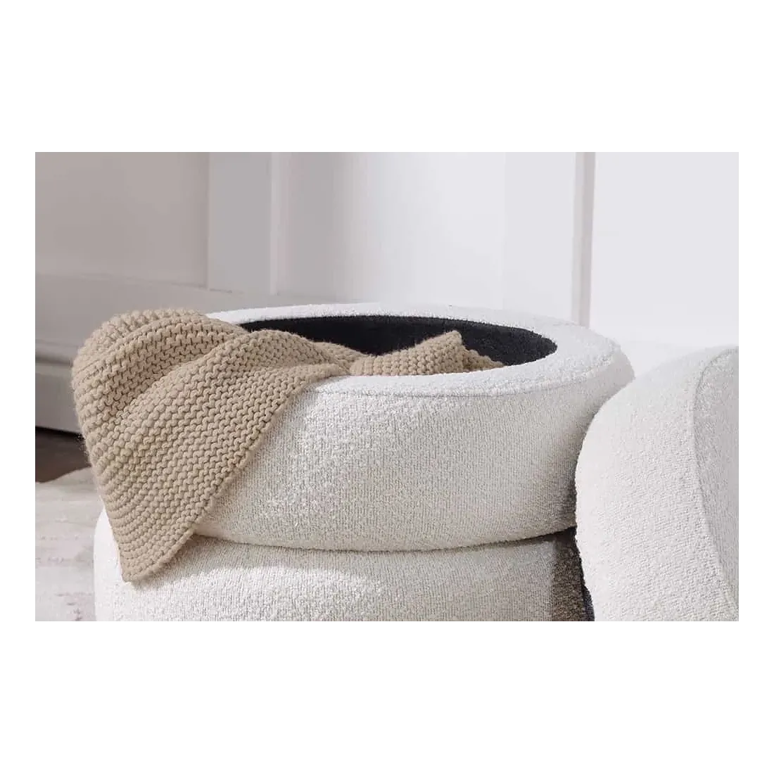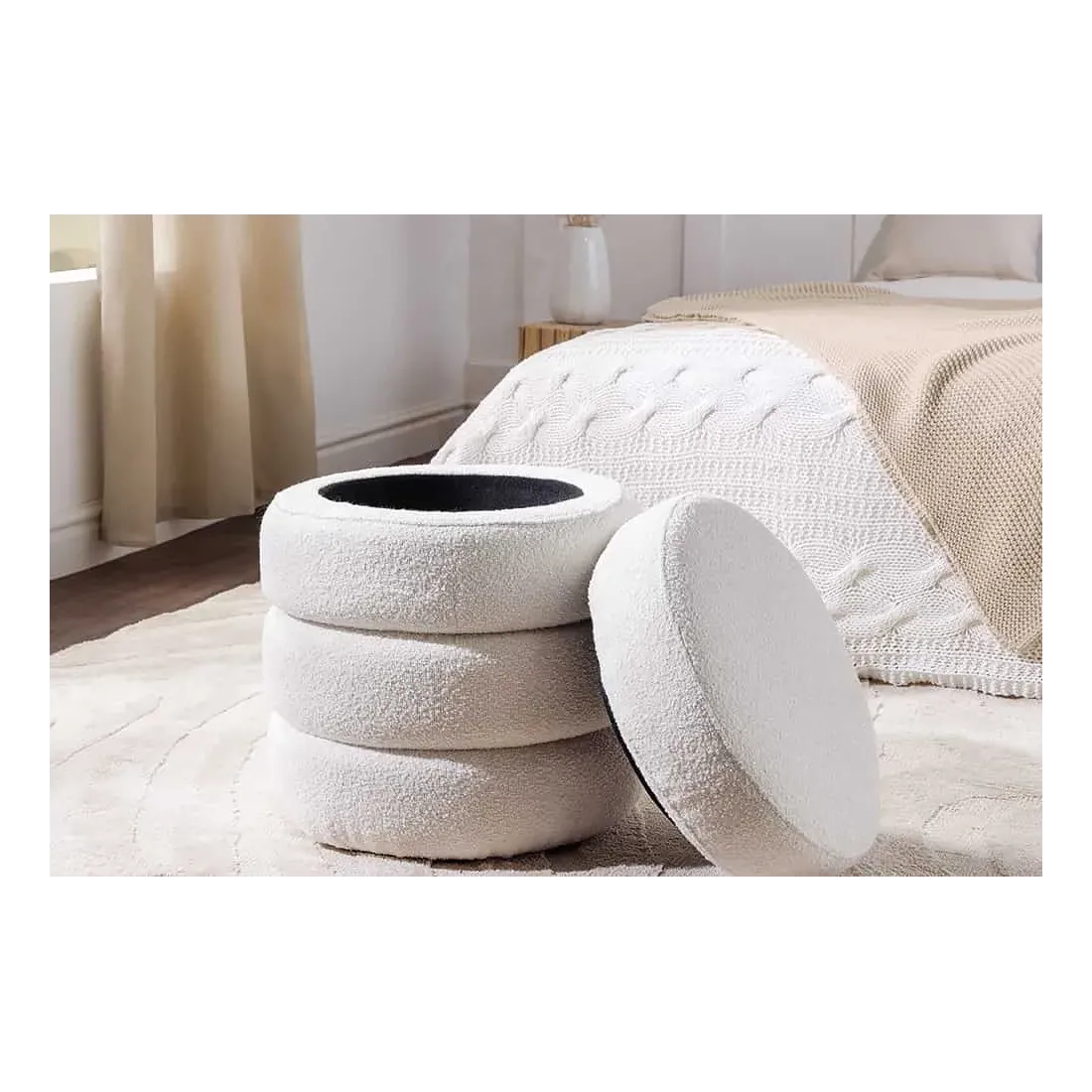 Pouf rond VOGUE 50 cm – Tissu bouclé crème blanc avec espace de rangement intégré