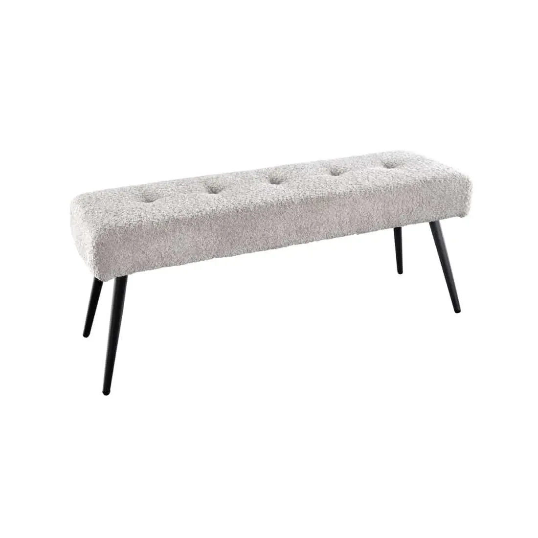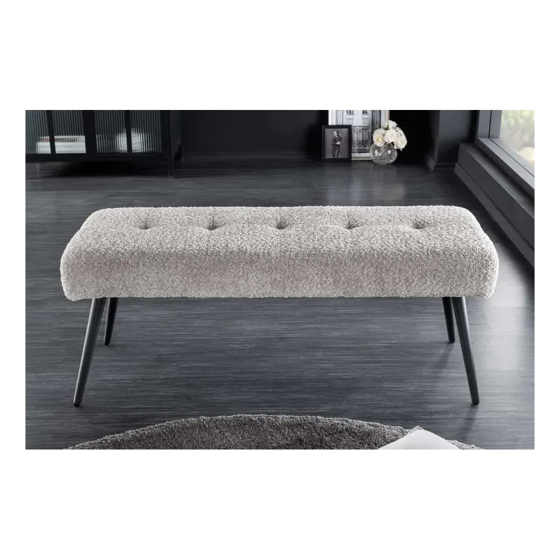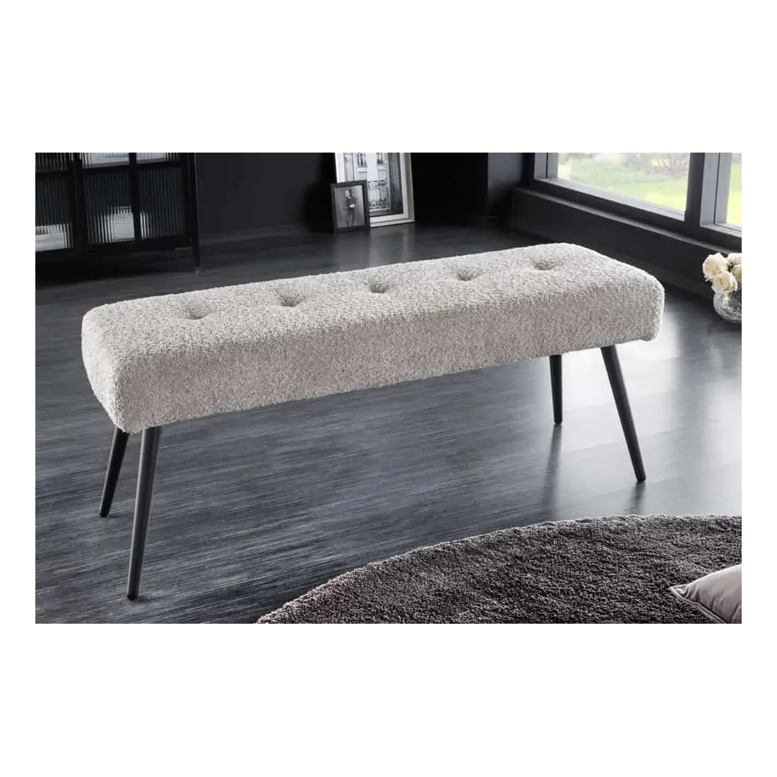 Banquette BOUTIQUE 100 cm – Tissu bouclé champagner greige avec pieds en métal noir réglables