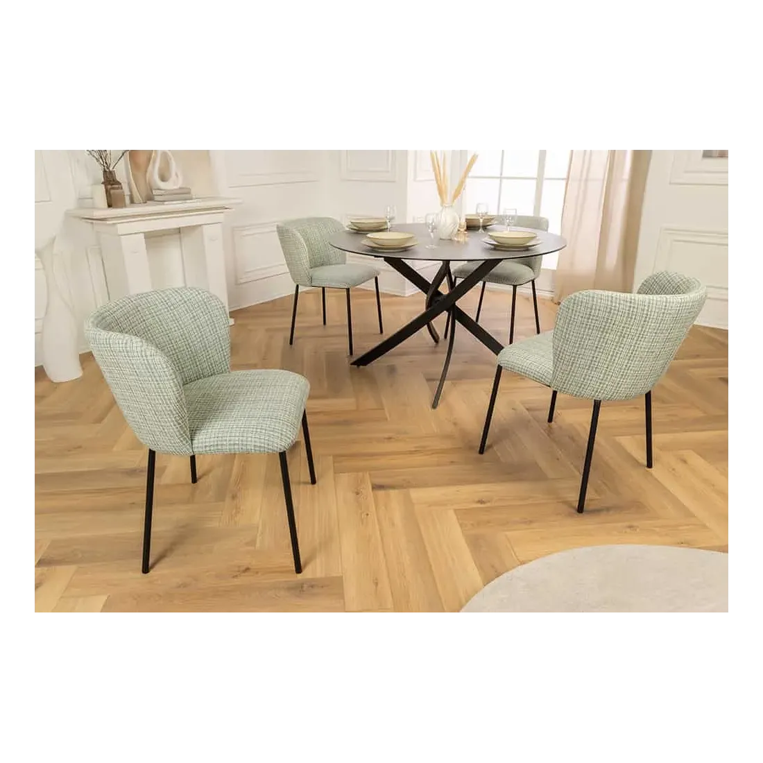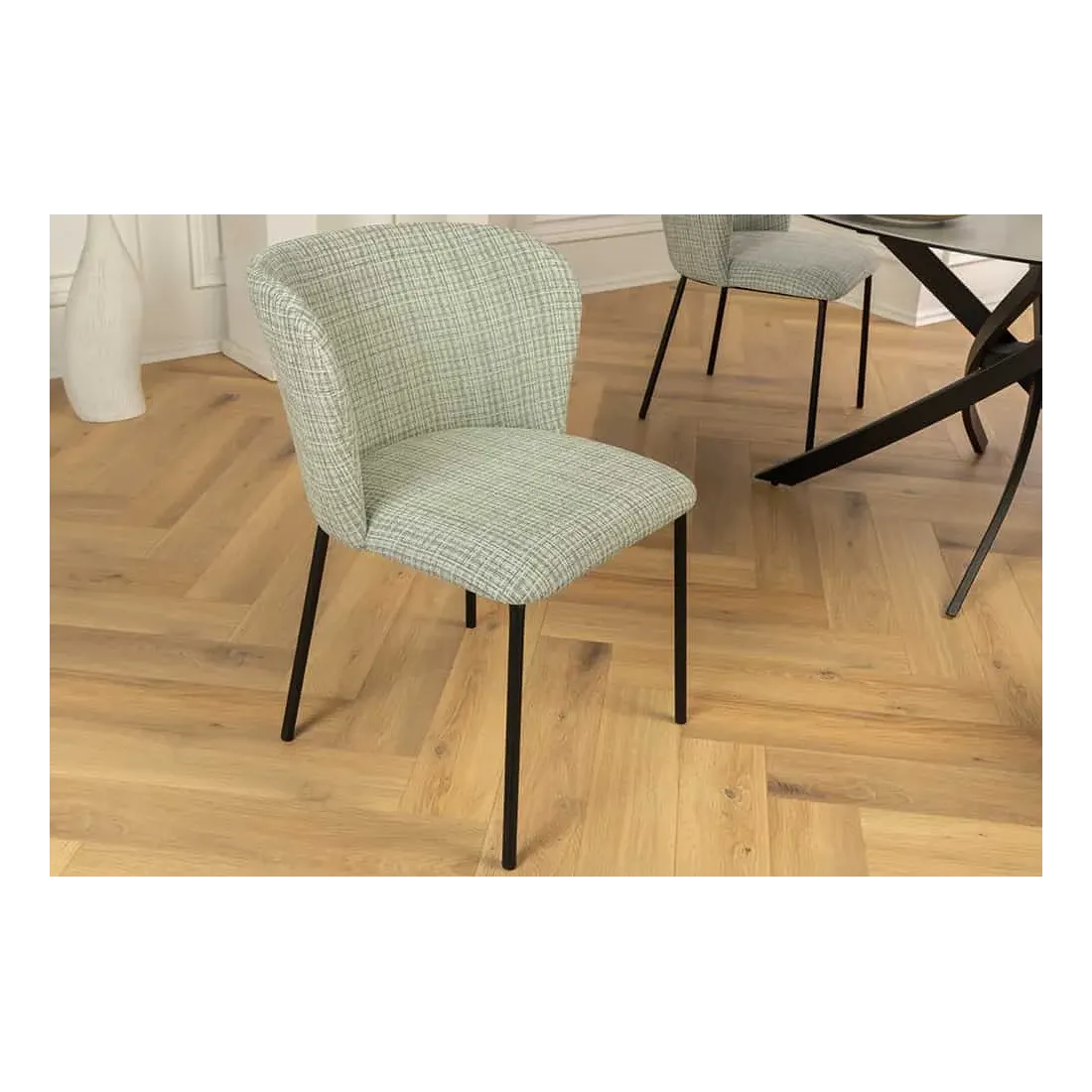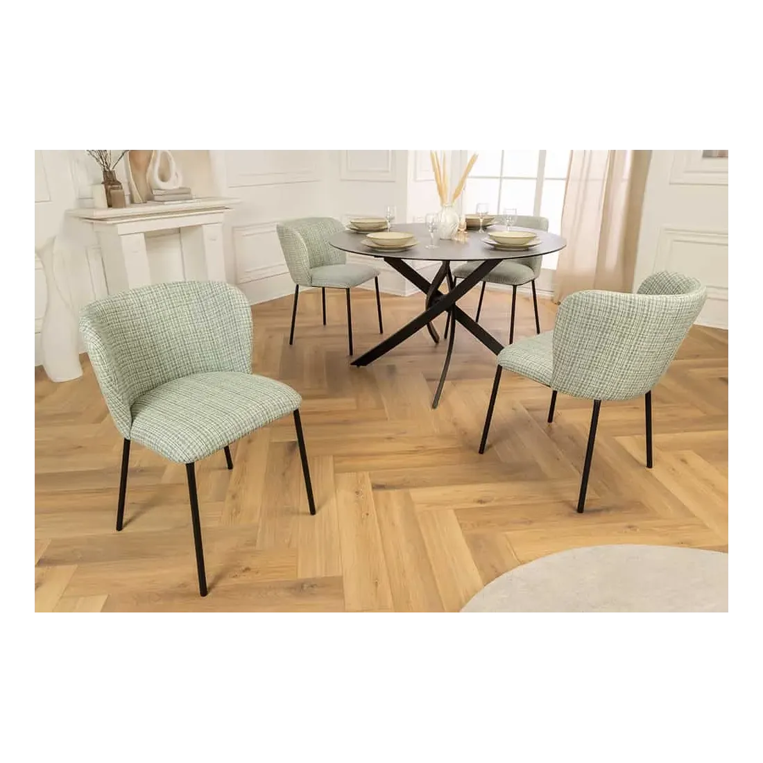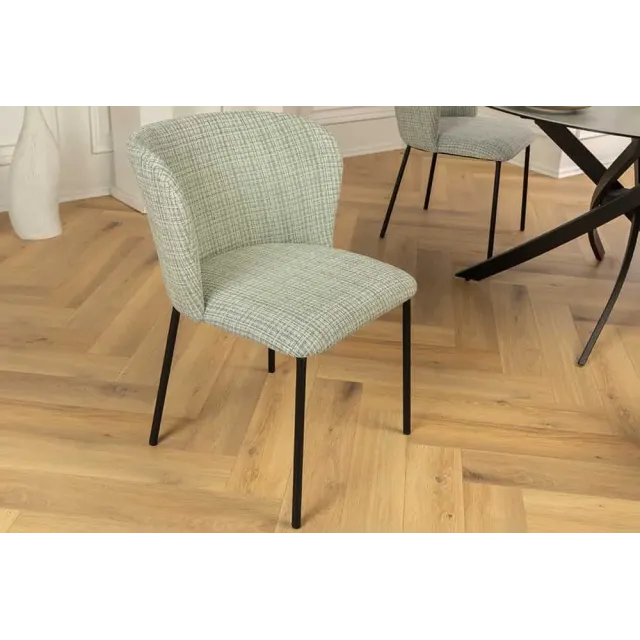 La chaise design LYON, avec son revêtement bouclé à carreaux vert-rose et ses pieds en métal noir poudré, est une pièce forte au style rétro chic. Confortable, stable et pleine de caractère, elle trouvera sa place aussi bien autour d’une table à manger que dans un bureau ou une chambre.