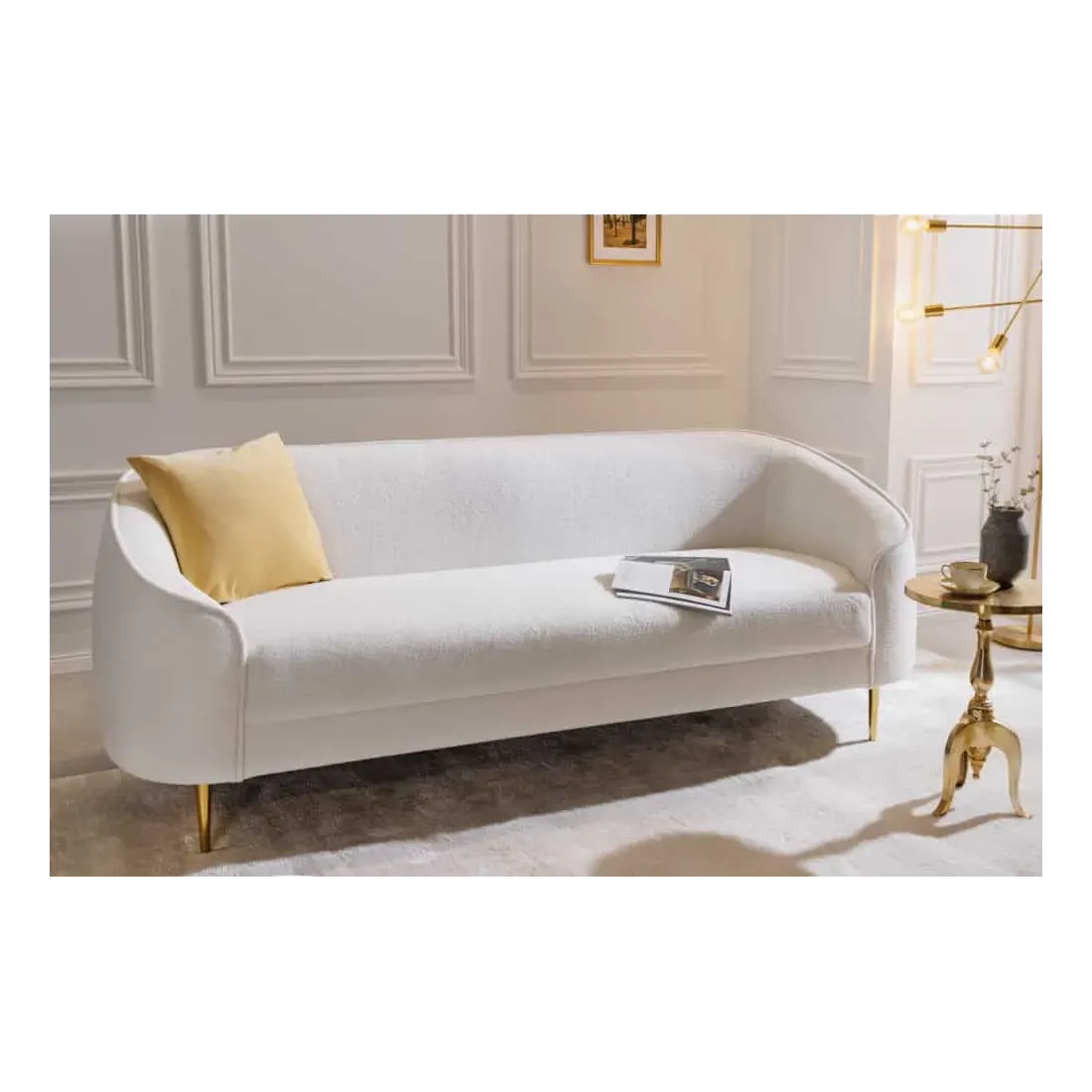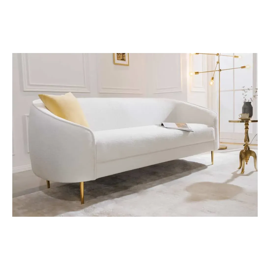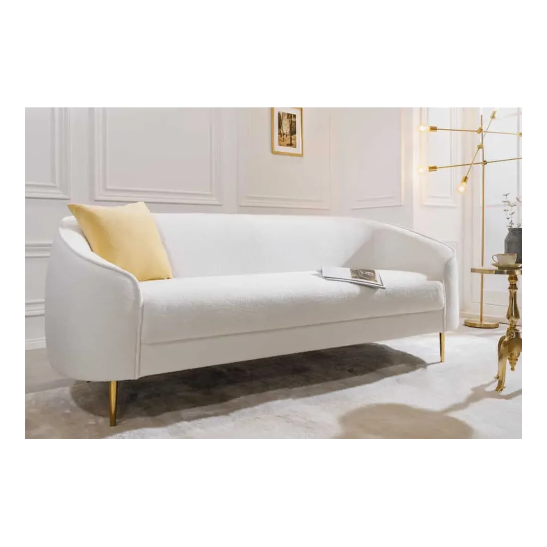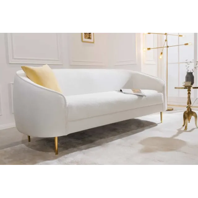 Canapé design 3 places DIVA – 205 cm en bouclé blanc avec pieds en métal doré | Confort & élégance