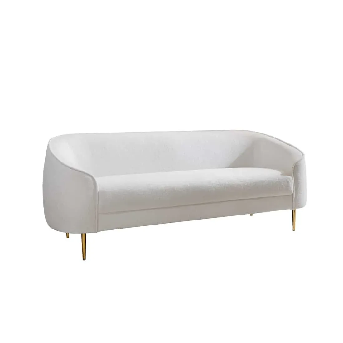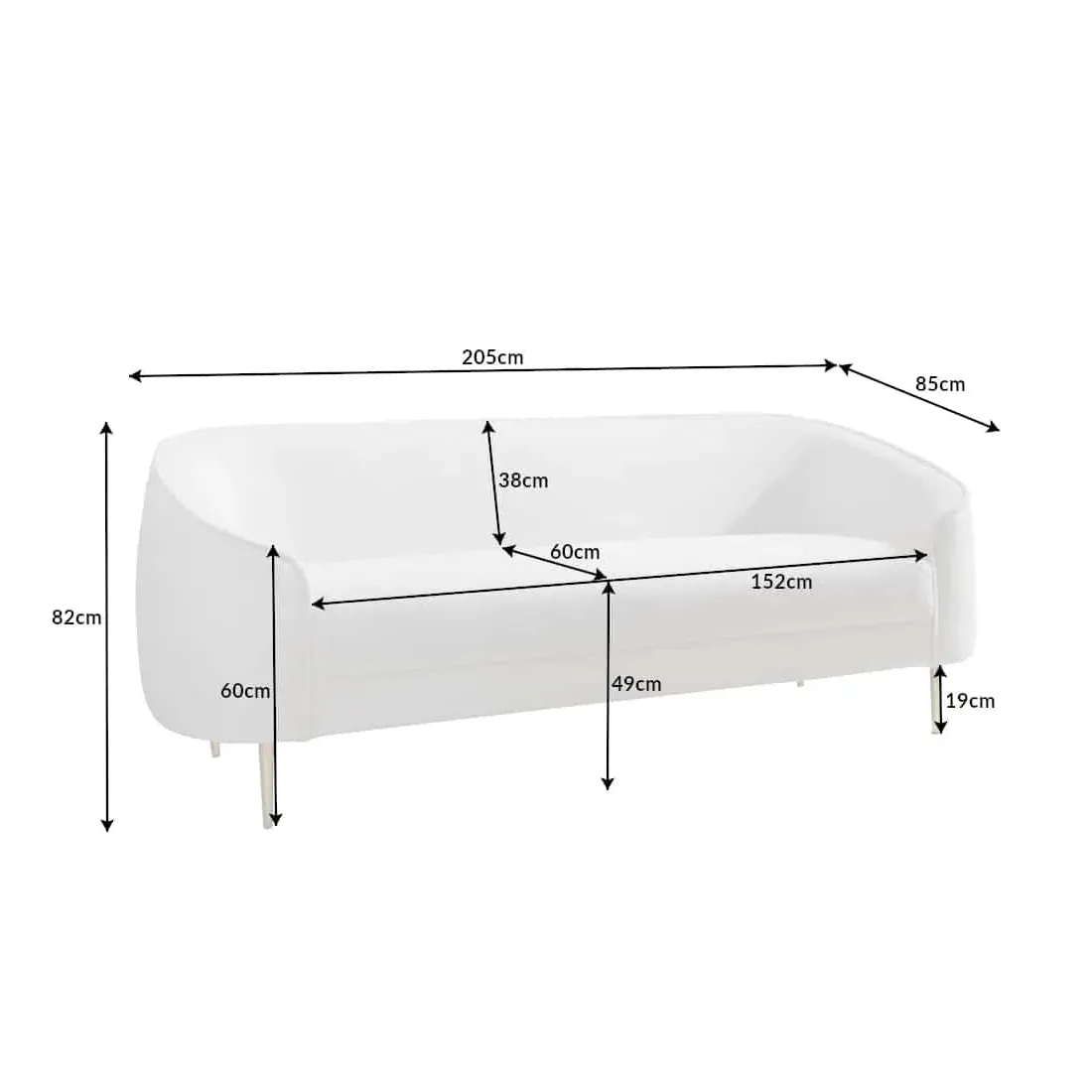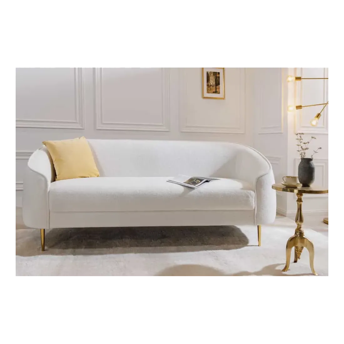 Canapé design 3 places DIVA – 205 cm en bouclé blanc avec pieds en métal doré | Confort & élégance