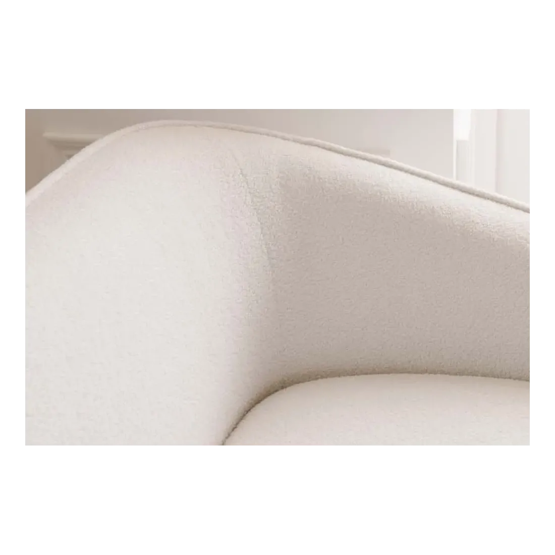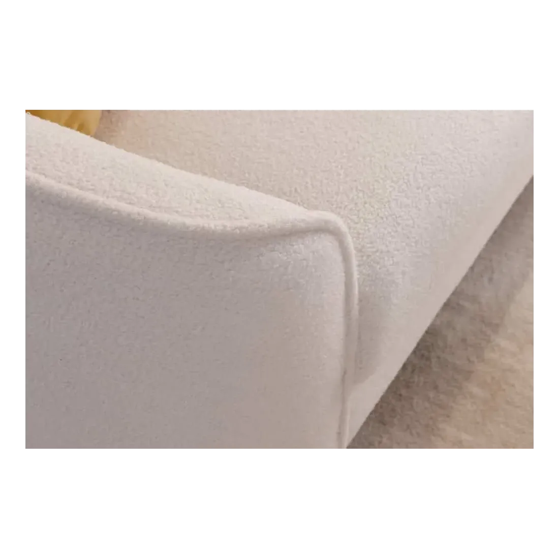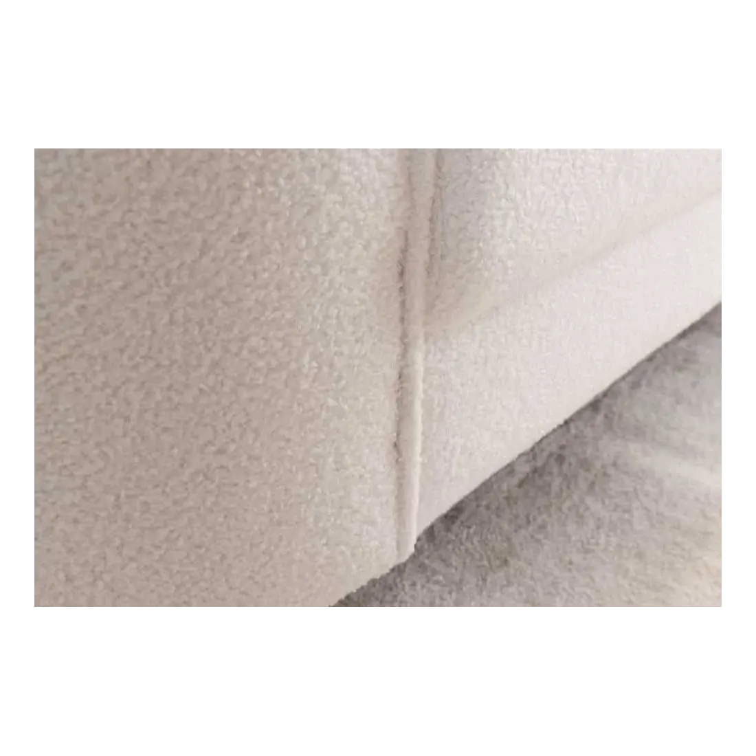 Le canapé DIVA est la parfaite alliance du luxe moderne et du confort absolu. Son revêtement en tissu bouclé blanc façon "teddy" (100 % polyester) séduit par sa texture douce et sa teinte lumineuse, tandis que ses pieds dorés en métal lui confèrent une allure résolument chic.