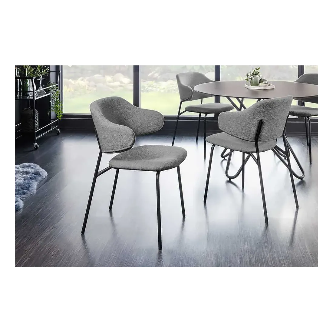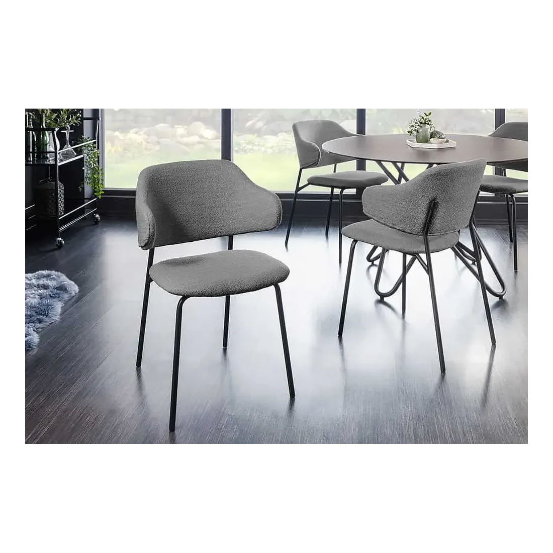 Chaise design VOGUE – Revêtement bouclé gris & pieds en métal noir mat | Élégance moderne & confort assuré