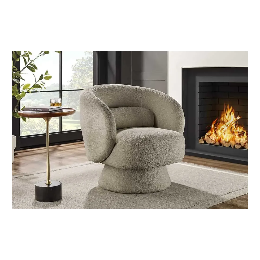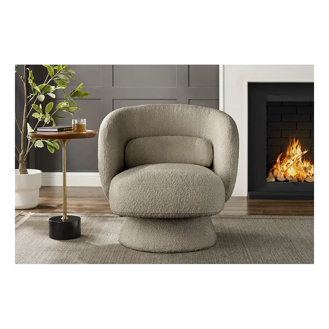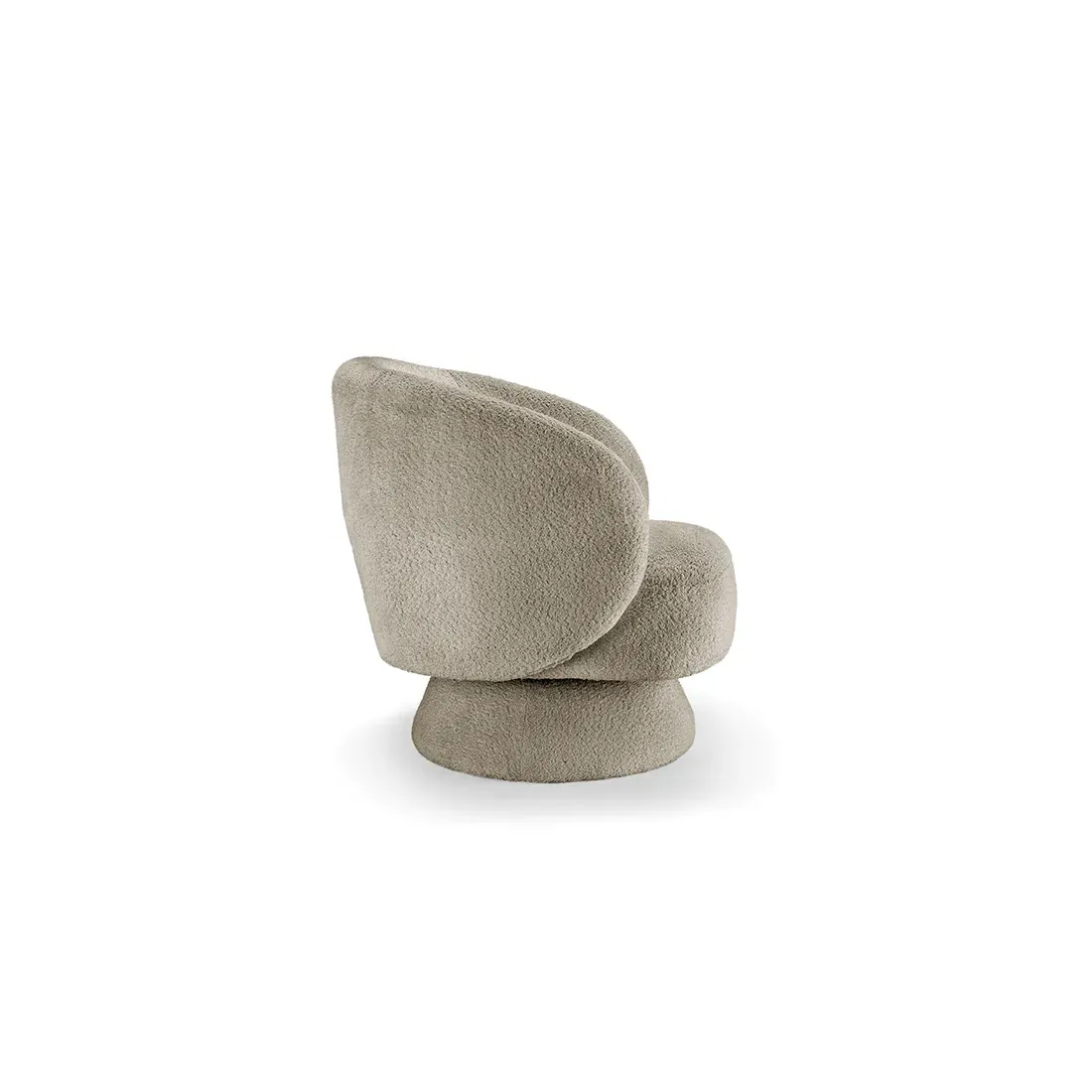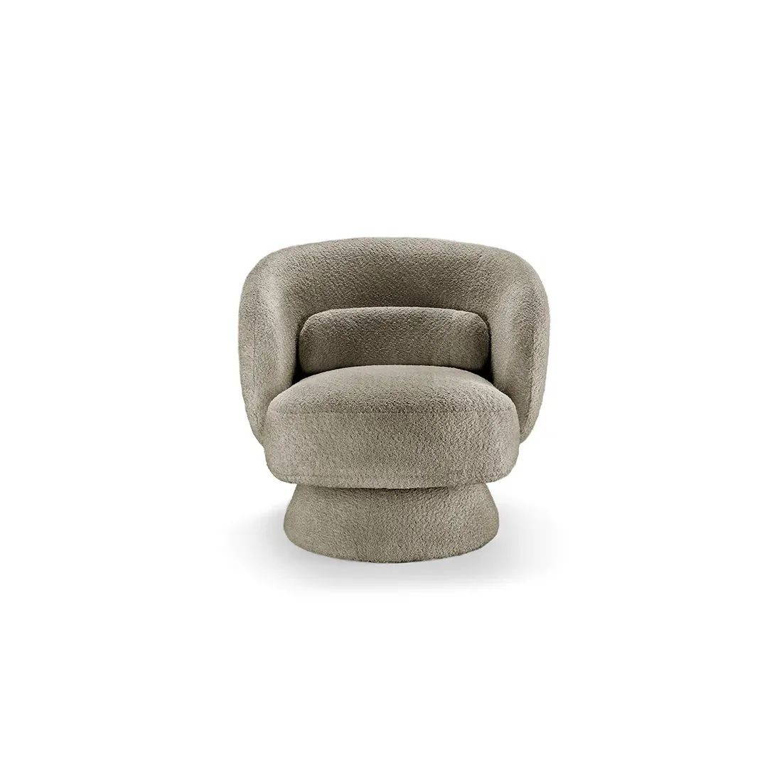 Fauteuil design pivotant BOSSA NOVA – Tissu bouclé taupe | Élégance & confort 360°