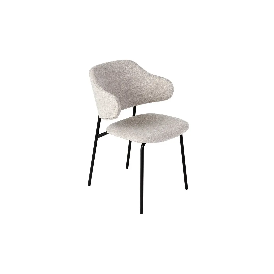 La chaise design VOGUE incarne parfaitement l’alliance entre style moderne et fonctionnalité. Son revêtement en tissu bouclé greige, doux et structuré, apporte chaleur et caractère à votre intérieur. Associée à un piétement en métal noir mat, elle adopte une silhouette sobre et élégante, idéale pour les ambiances contemporaines, minimalistes ou scandinaves.