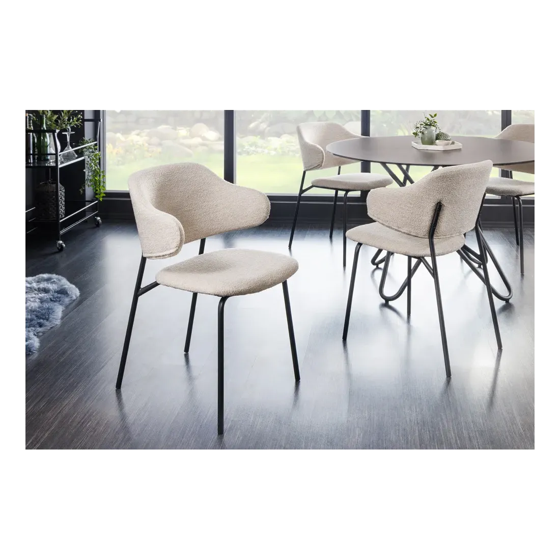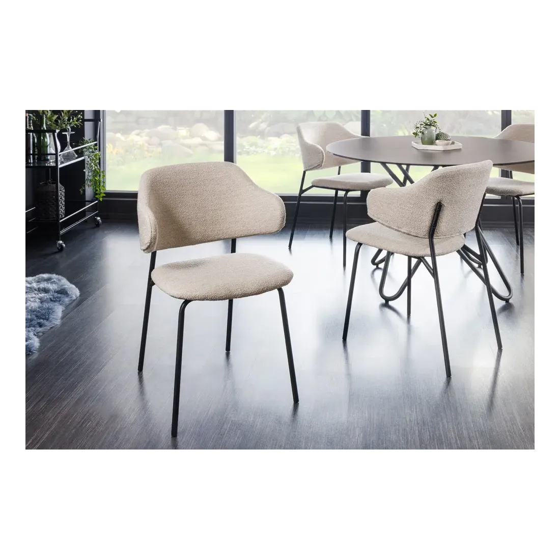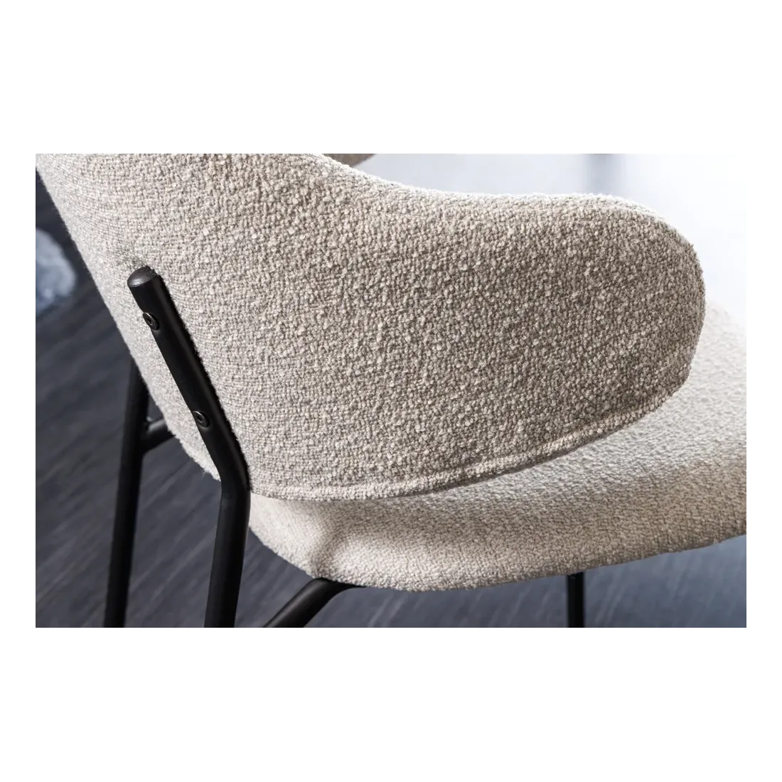 Chaise design VOGUE – Bouclé greige & pieds en métal noir mat | Élégance contemporaine et confort