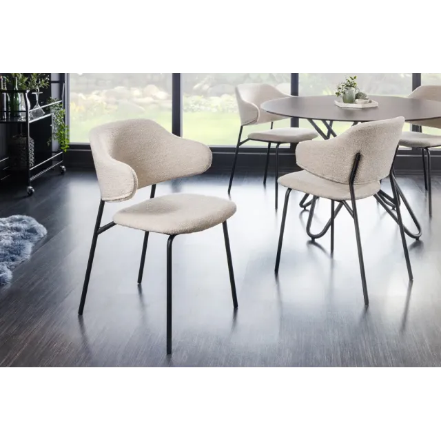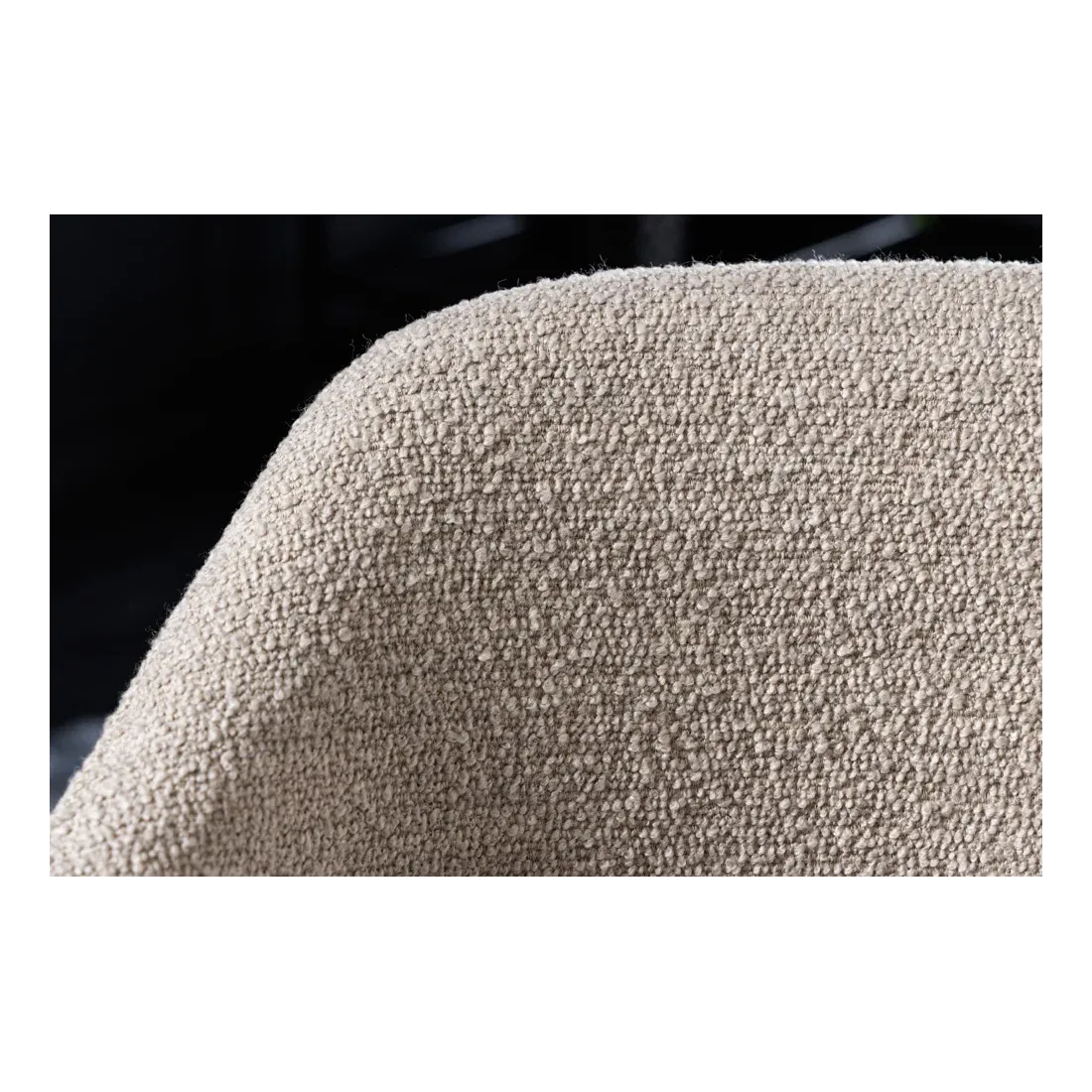 La chaise VOGUE séduit par son revêtement en bouclé greige tendance et sa structure robuste en métal noir mat. Son assise généreuse, ses accoudoirs intégrés et son dossier ergonomique offrent un confort optimal pour un usage quotidien, autour d’une table ou dans un espace de travail.