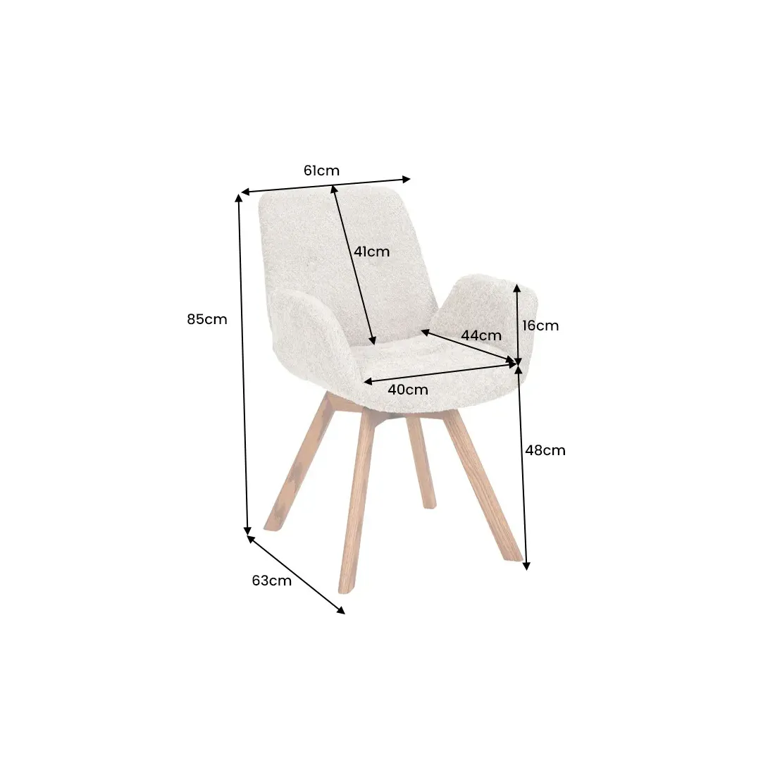 La chaise BALTIC marie l’esthétique scandinave avec une fonctionnalité bien pensée. Son design épuré s’adapte à tous les styles d’intérieur : contemporain, nordique ou bohème chic. Son assise généreusement rembourrée en mousse haute densité est recouverte d’un tissu bouclé beige doux au toucher, pour un confort enveloppant.