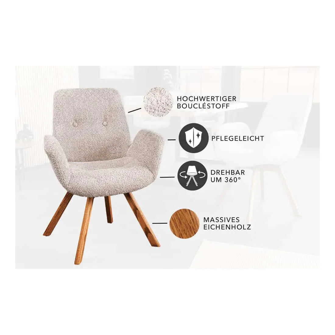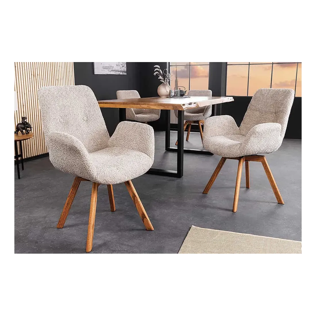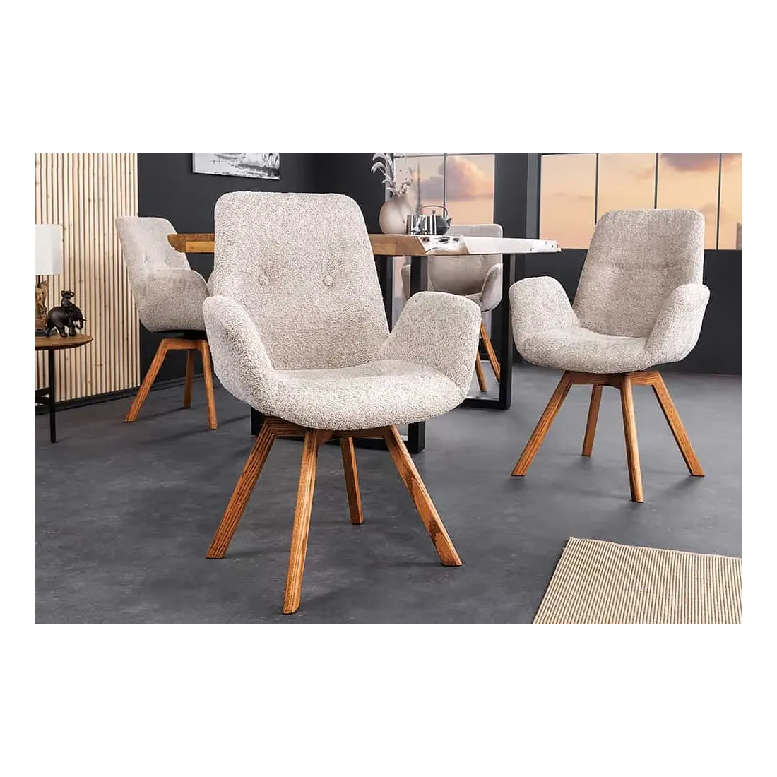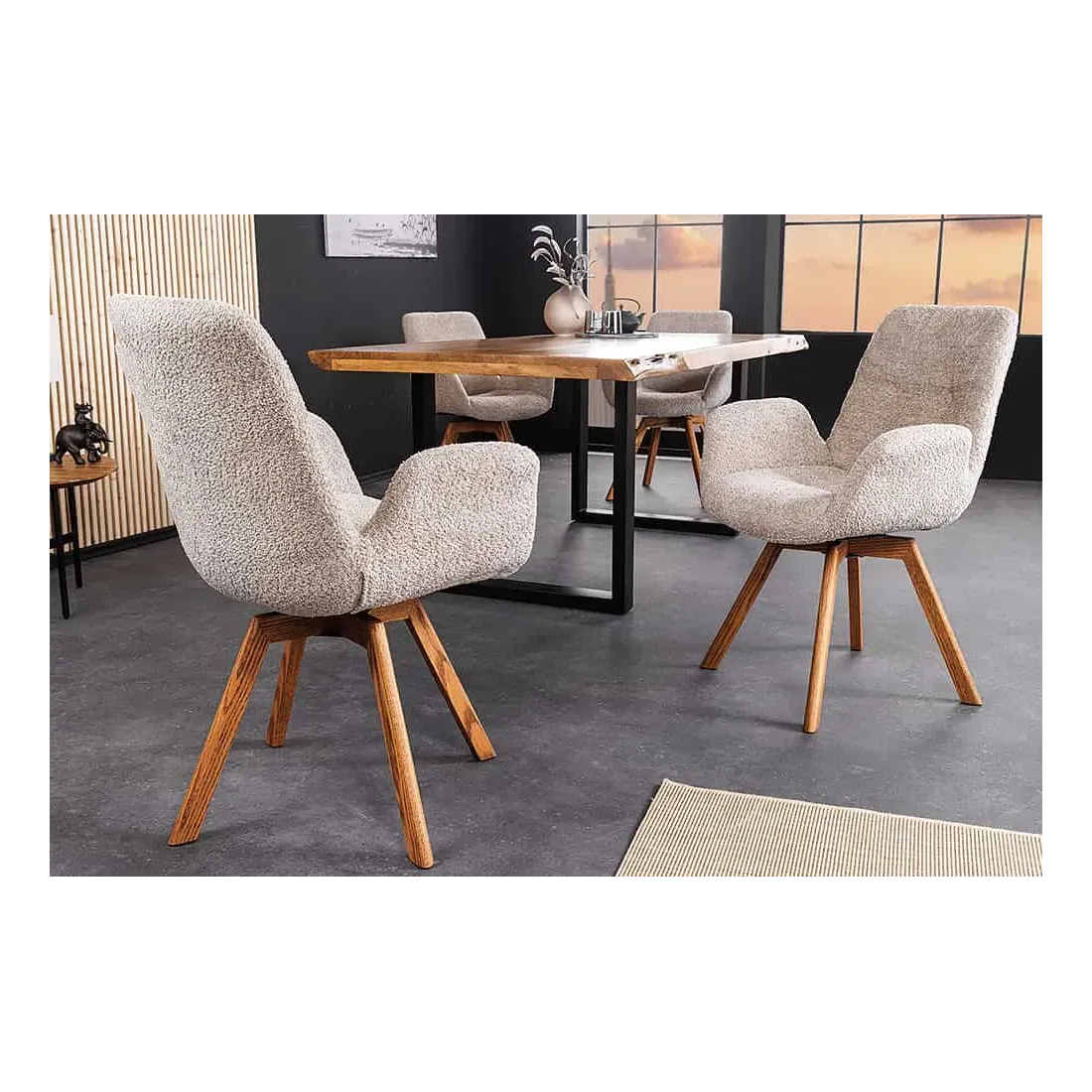 Chaise design BALTIC pivotante – Tissu bouclé beige & pieds en chêne naturel | Élégance nordique & confort moderne