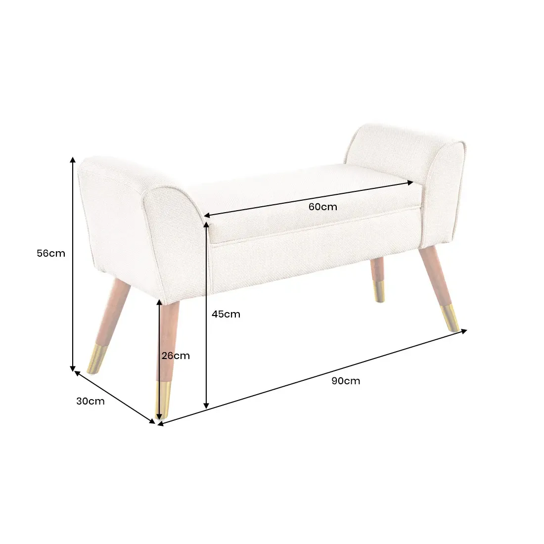 Dotée de deux accoudoirs latéraux et d’un rembourrage confortable, cette banquette est parfaite pour offrir une assise supplémentaire dans une entrée, un salon ou au pied d’un lit. Grâce à ses dimensions compactes, elle s’intègre aisément dans tous les espaces.