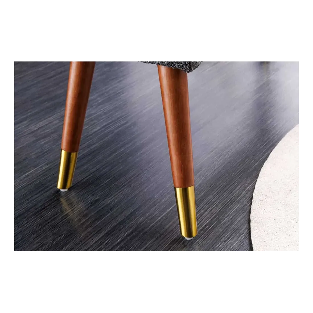 Avec son allure élégante et sa finition soignée, la banquette SCARLETT se distingue par un style rétro inspiré des années 50. Son revêtement en tissu bouclé anthracite apporte une ambiance chaleureuse et cocooning, tandis que les pieds en bois de caoutchouc naturel, sublimés par des embouts métalliques dorés, ajoutent une touche de raffinement.