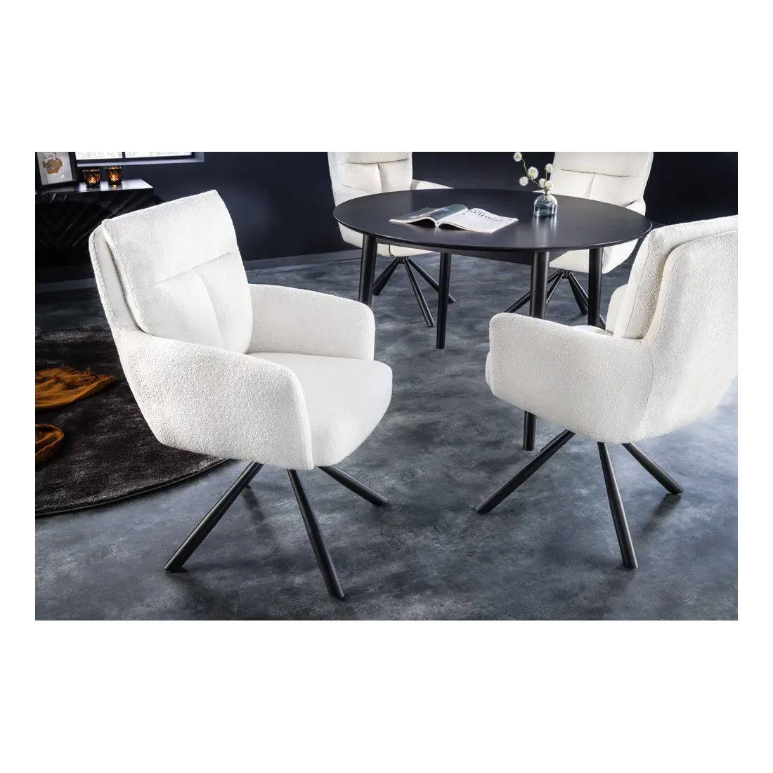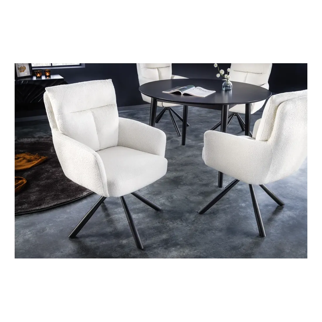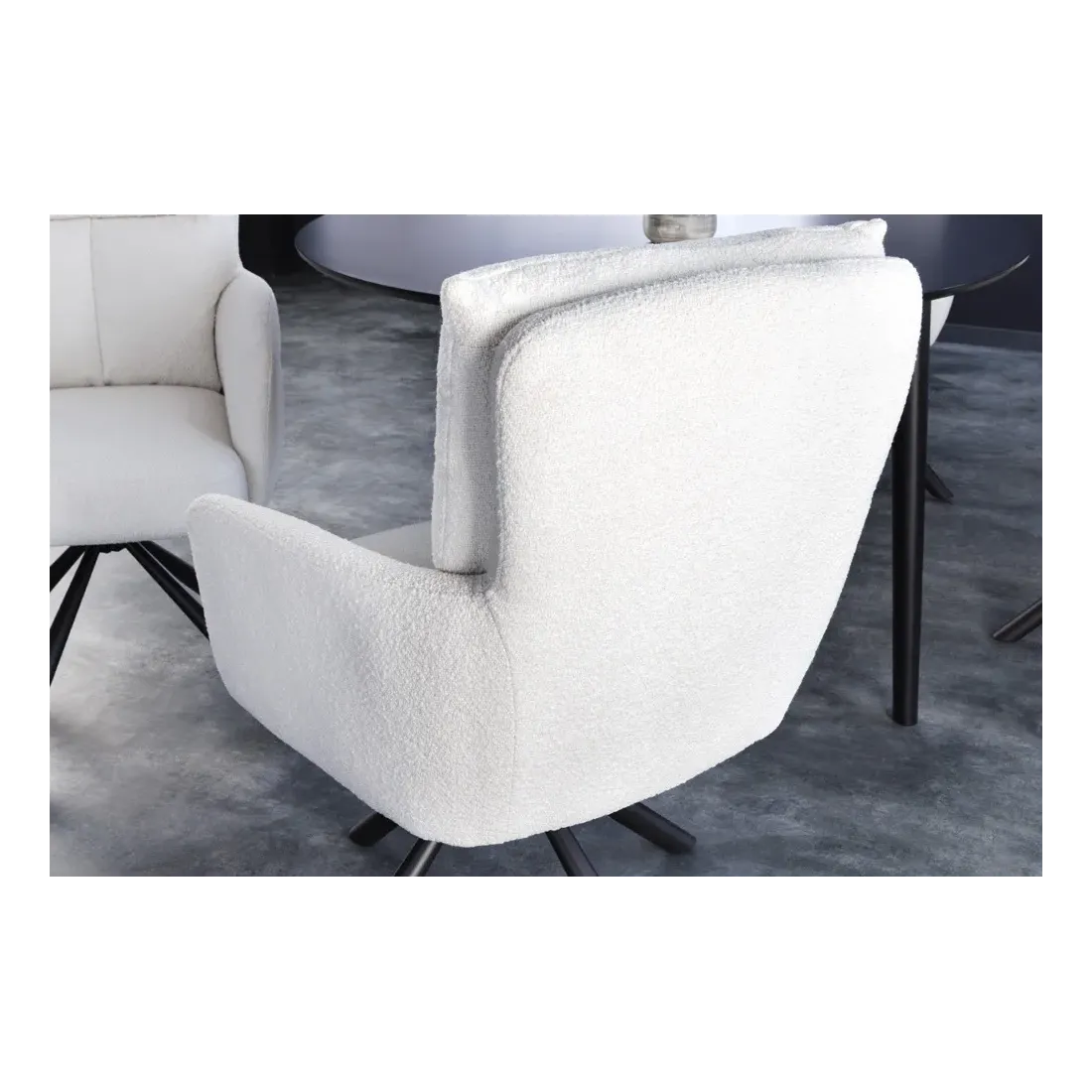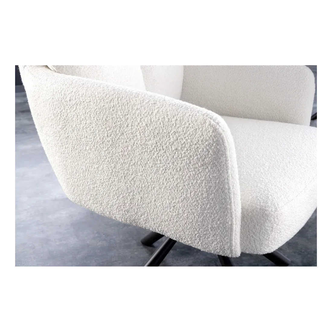 Fauteuil pivotant BIG GEORGE – Style rétro en bouclé blanc avec assise à ressorts Bonell et pieds métal noir