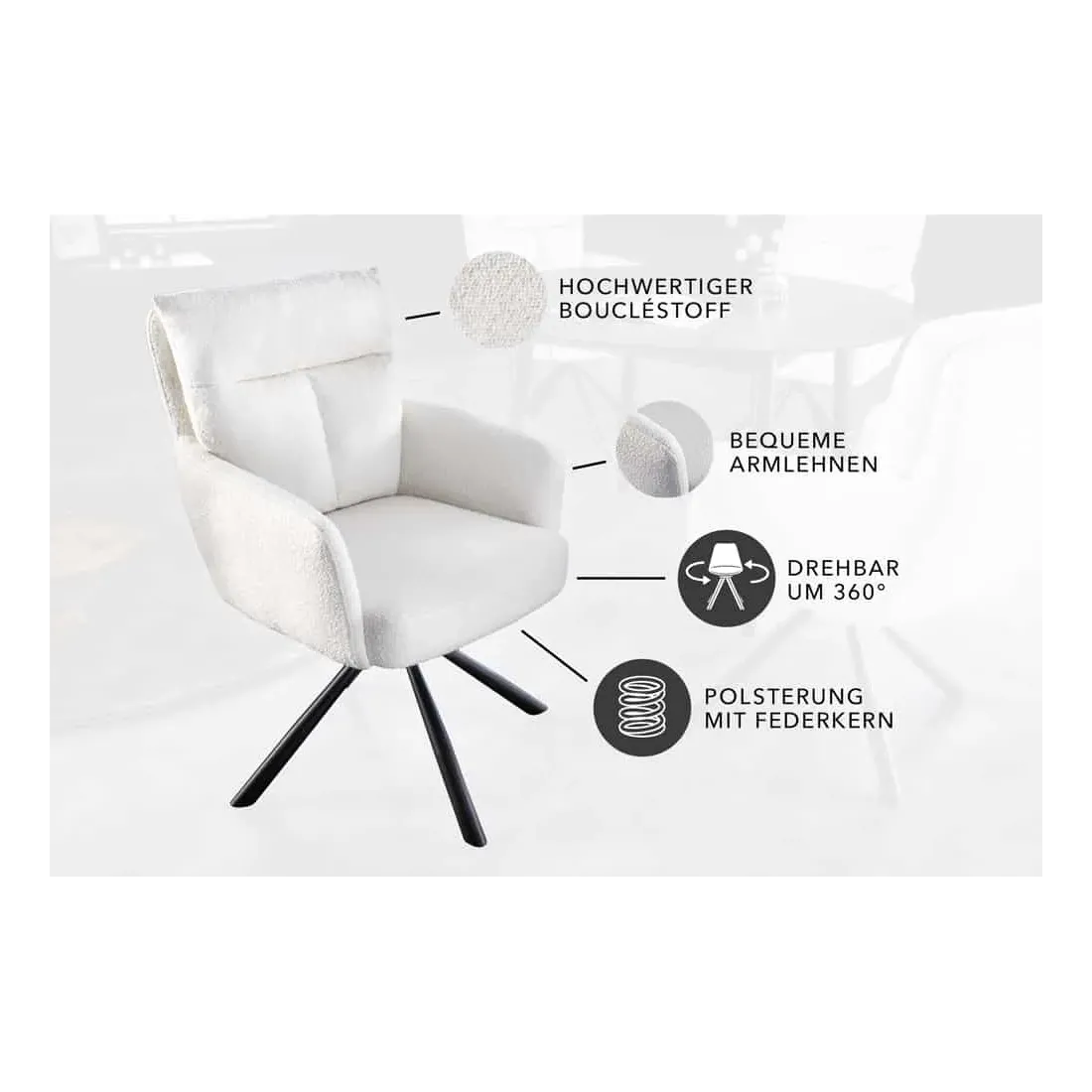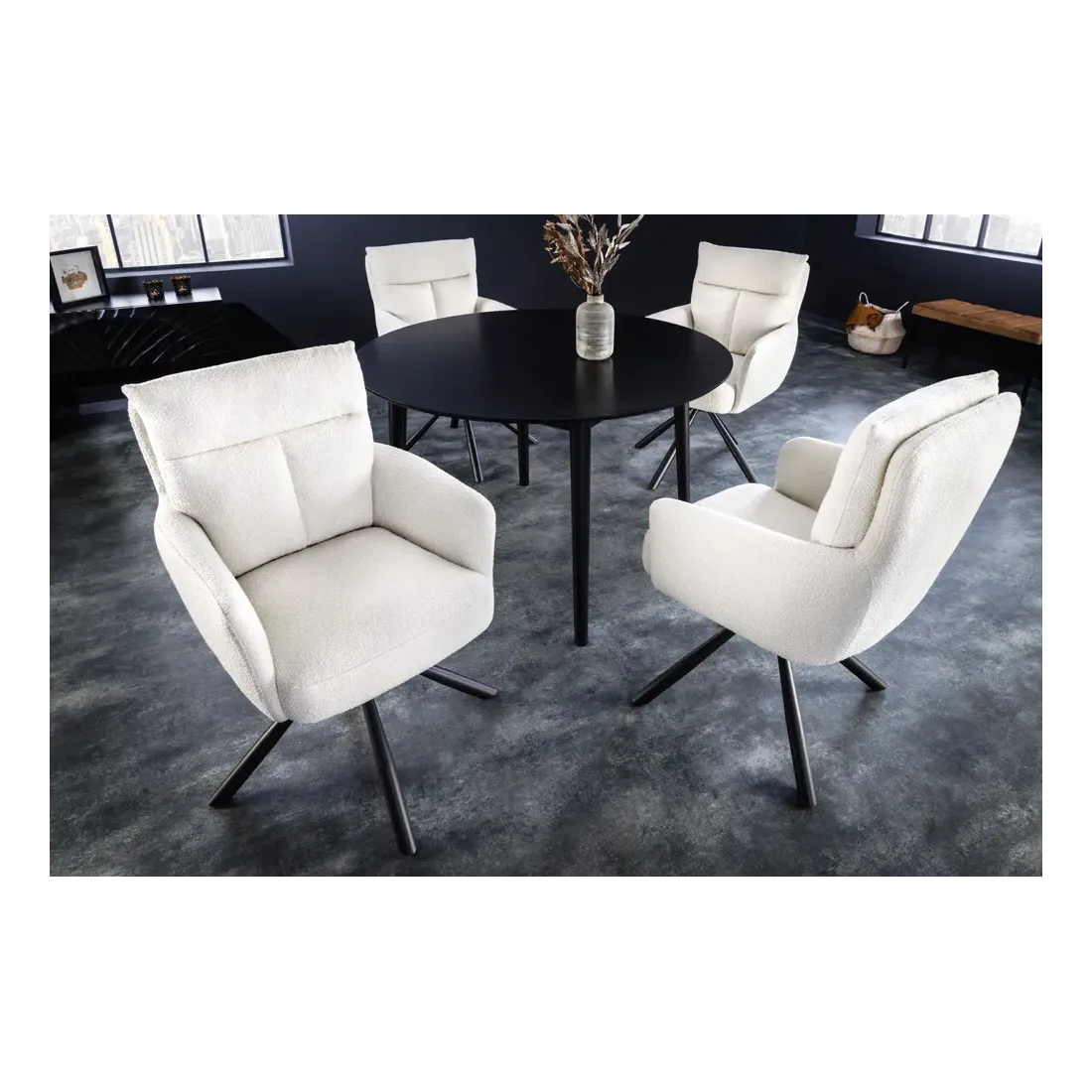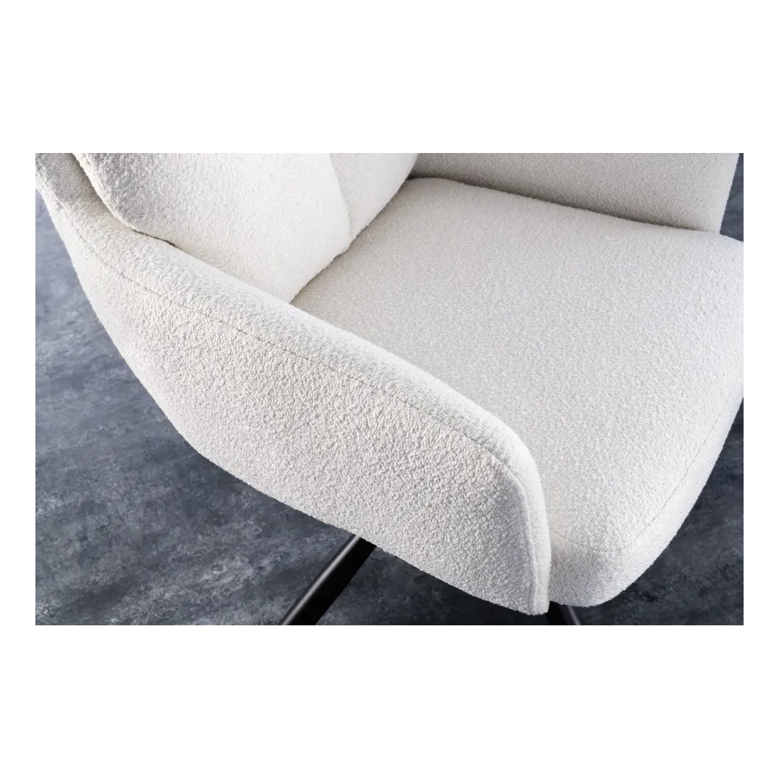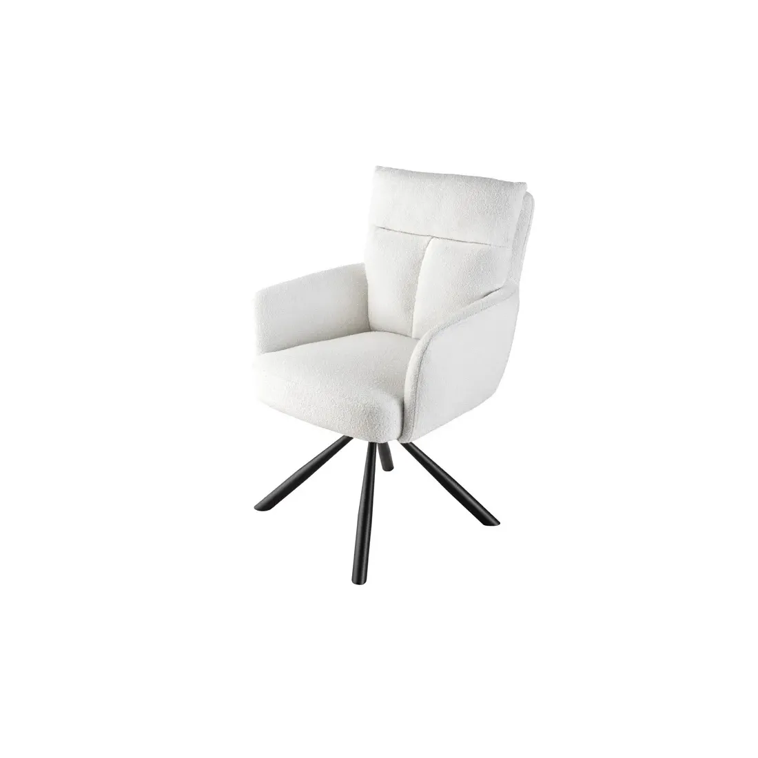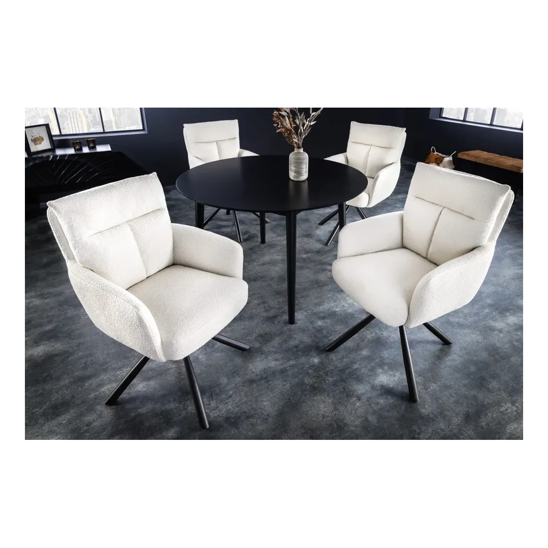 Fauteuil pivotant BIG GEORGE – Style rétro en bouclé blanc avec assise à ressorts Bonell et pieds métal noir