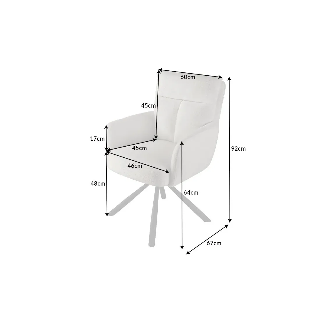 Le fauteuil pivotant BIG GEORGE séduit par son style résolument rétro, remis au goût du jour avec des matériaux modernes et une finition élégante. Son revêtement en tissu bouclé greige, doux et structuré façon « teddy », s’intègre parfaitement dans une décoration contemporaine, scandinave ou vintage.