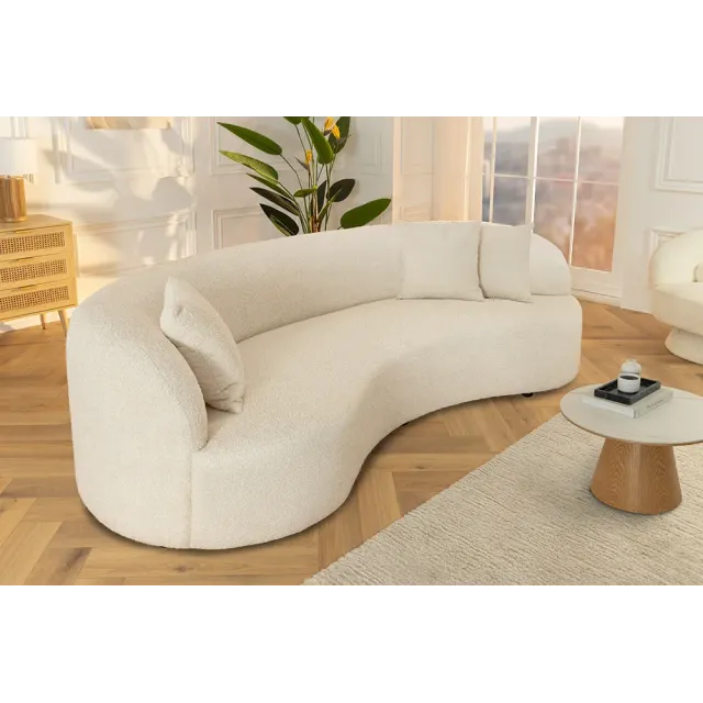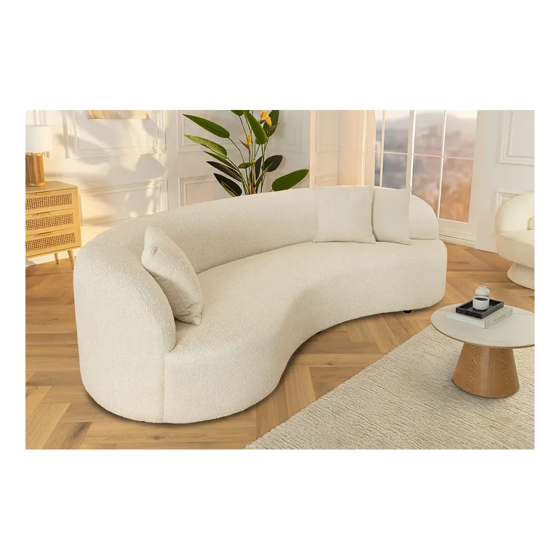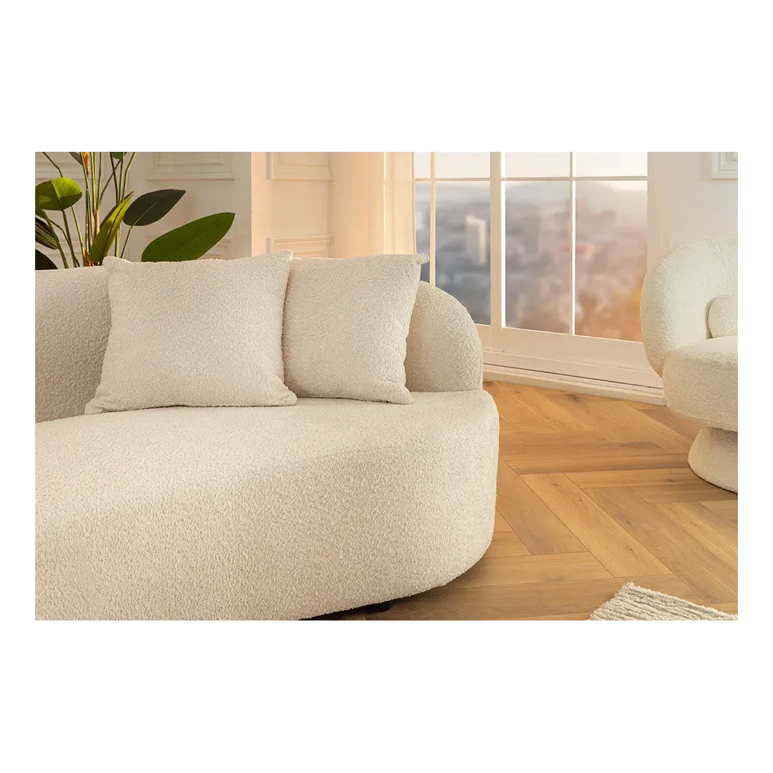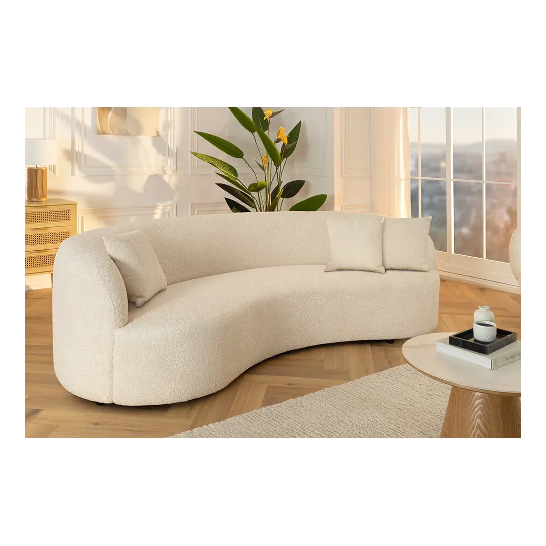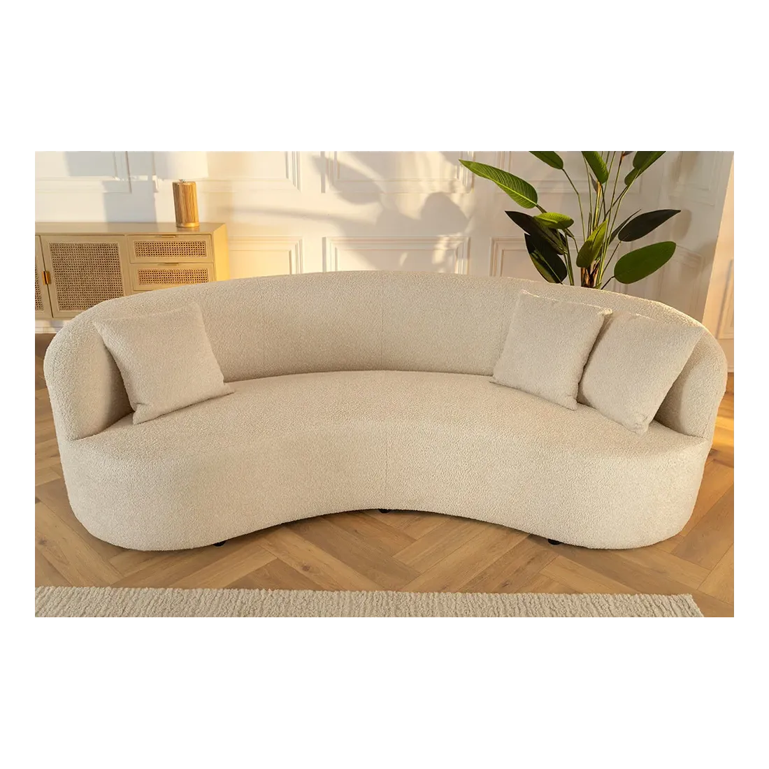 Canapé 3 places ATELIER – 230 cm – Tissu bouclé beige, coussins inclus, design moderne