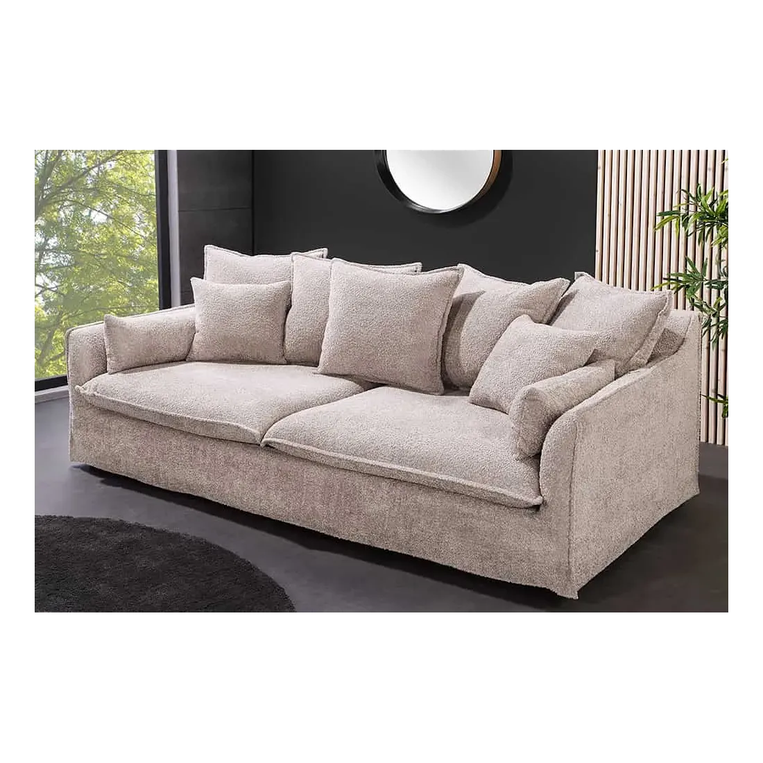 Revêtu d’un somptueux tissu bouclé champagne beige, doux et texturé, ce canapé apporte instantanément une atmosphère chaleureuse à votre intérieur. Son style "hussensofa" avec housse amovible et finition décontractée chic lui confère un charme intemporel.