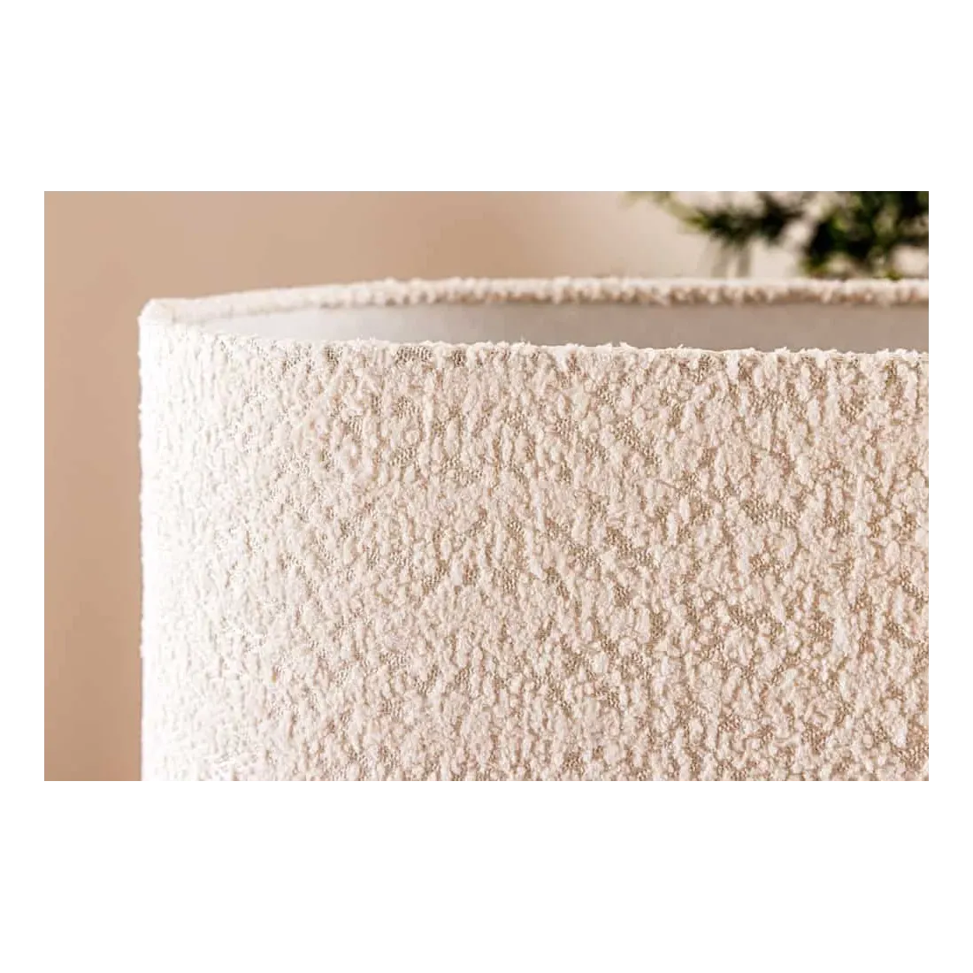 L’abat-jour blanc en tissu (100 % polyester) vient adoucir le rendu et diffuser une lumière chaude et tamisée, parfaite pour une ambiance apaisante dans un salon, une chambre ou un bureau.