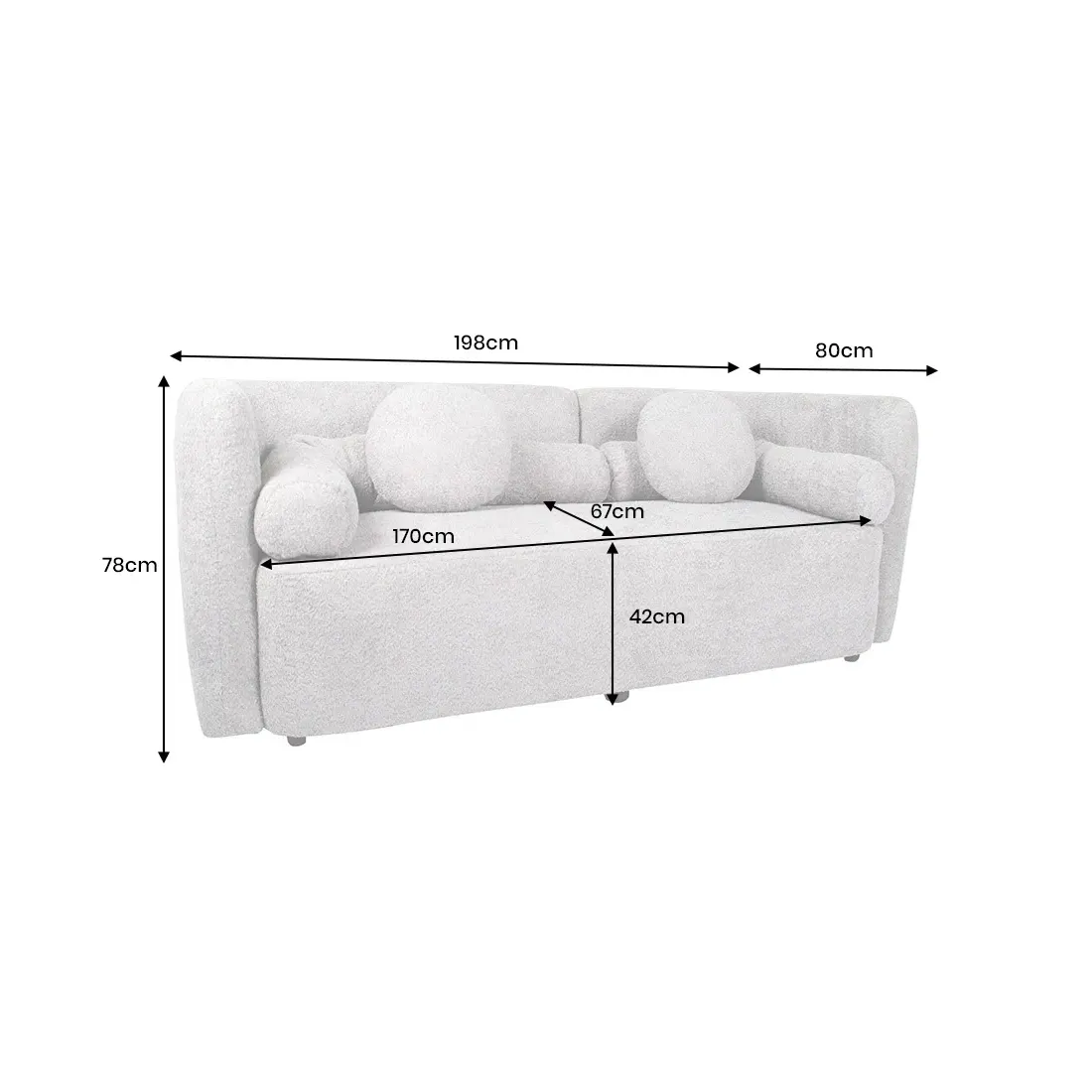 Canapé 3 places ART DÉCO 200 cm gris en tissu bouclé – Sofa moderne avec coussins et pieds noirs