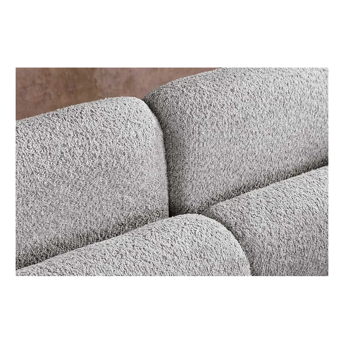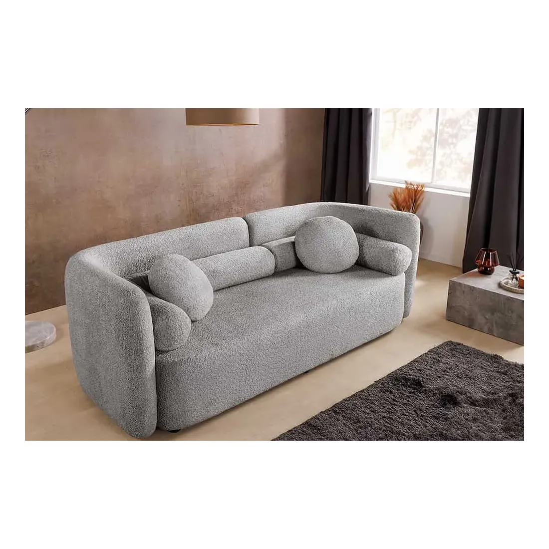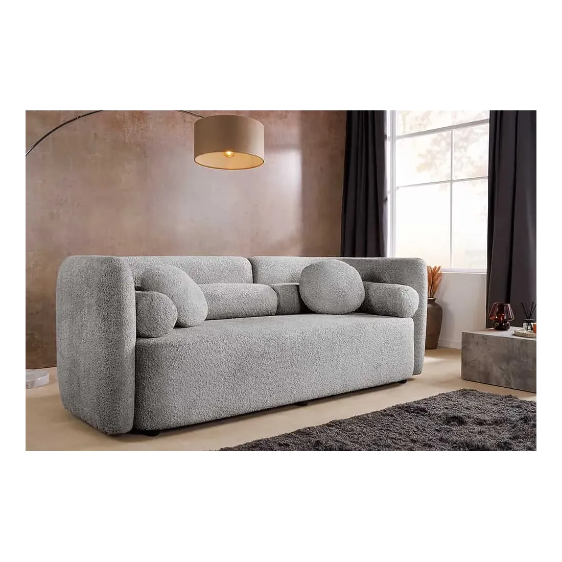 Découvrez le canapé ART DÉCO en tissu bouclé gris : un modèle 3 places au design moderne et confortable, livré avec deux coussins assortis. Parfait pour apporter une touche chic et cosy à votre salon.