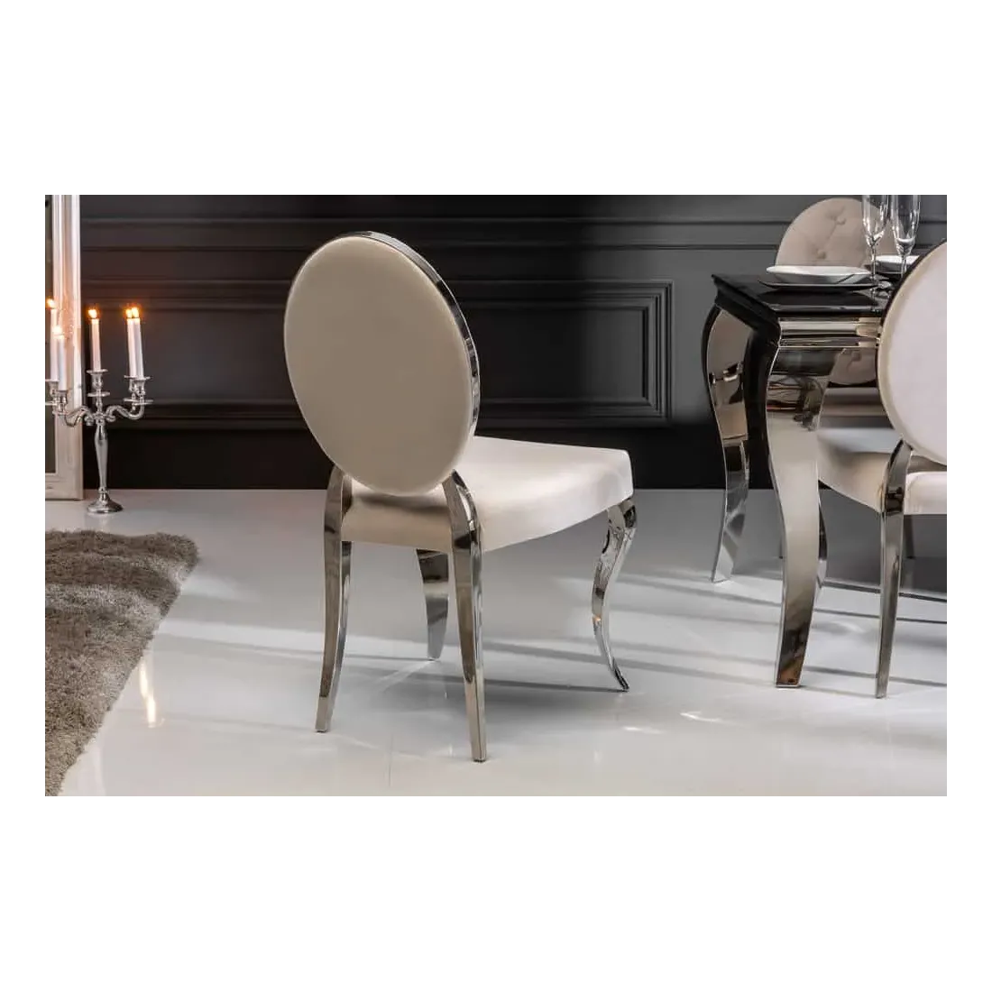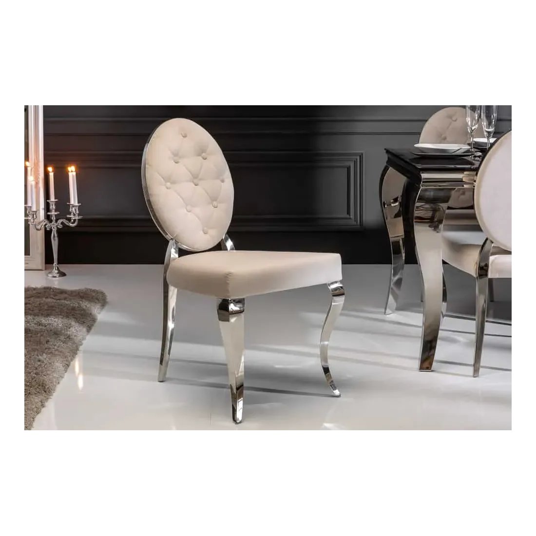 Chaise moderne baroque en velours beige – Design élégant avec pieds en acier inoxydable