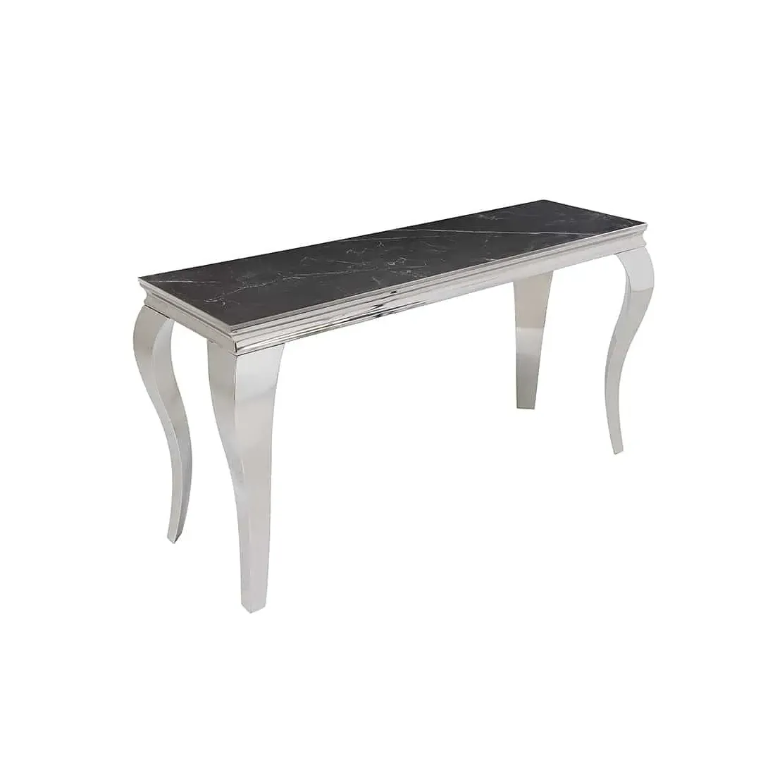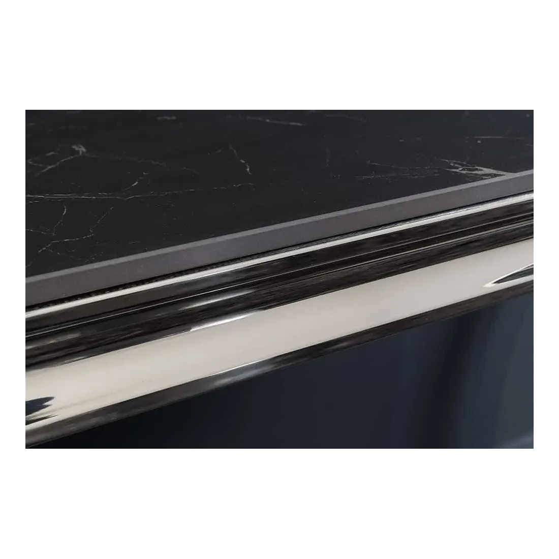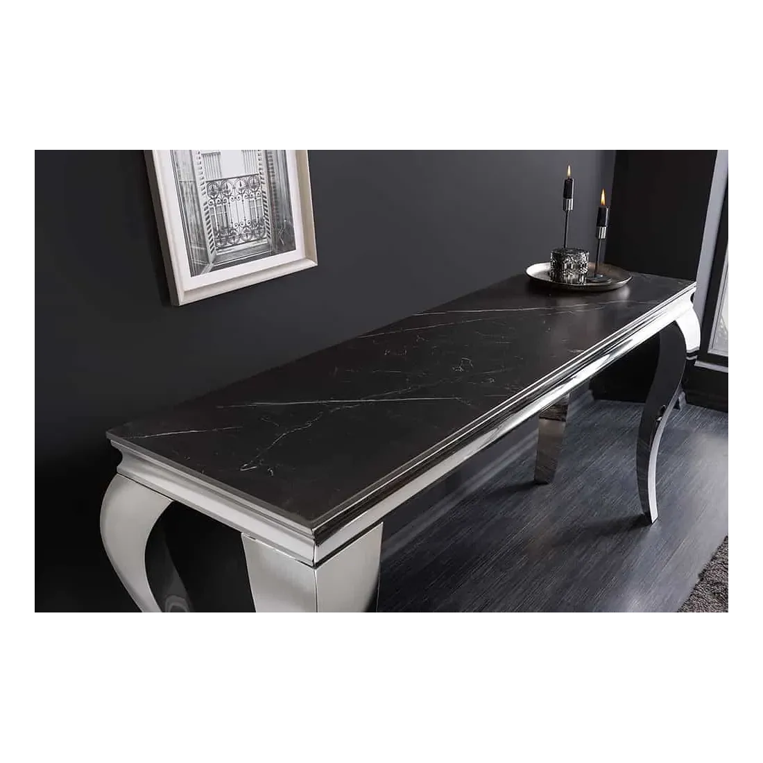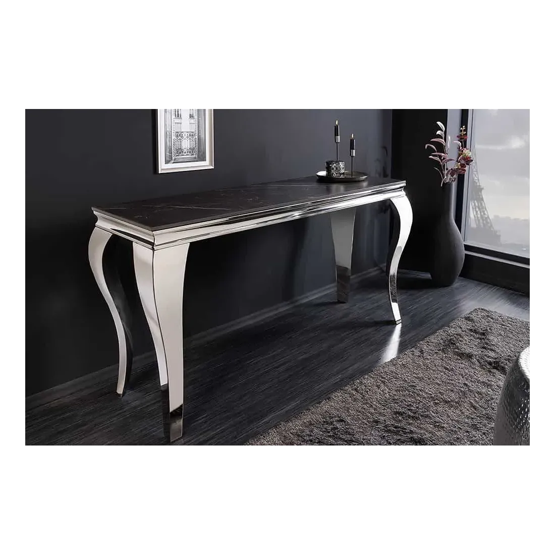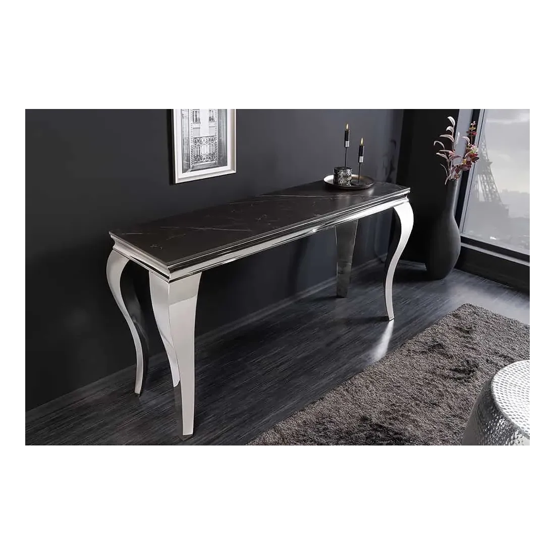 Console design baroque moderne 140 cm – Céramique effet marbre anthracite & pieds chromés