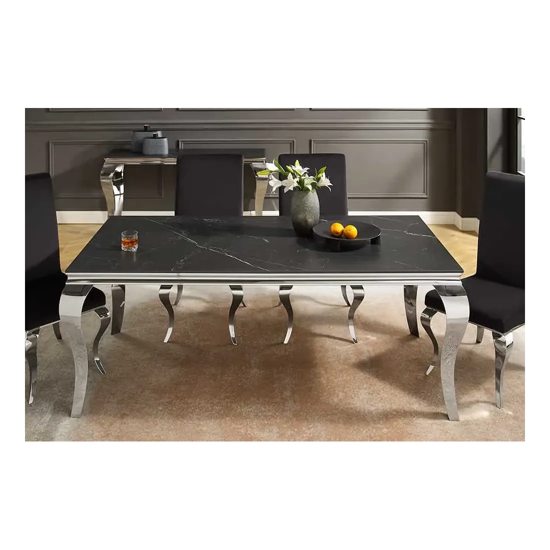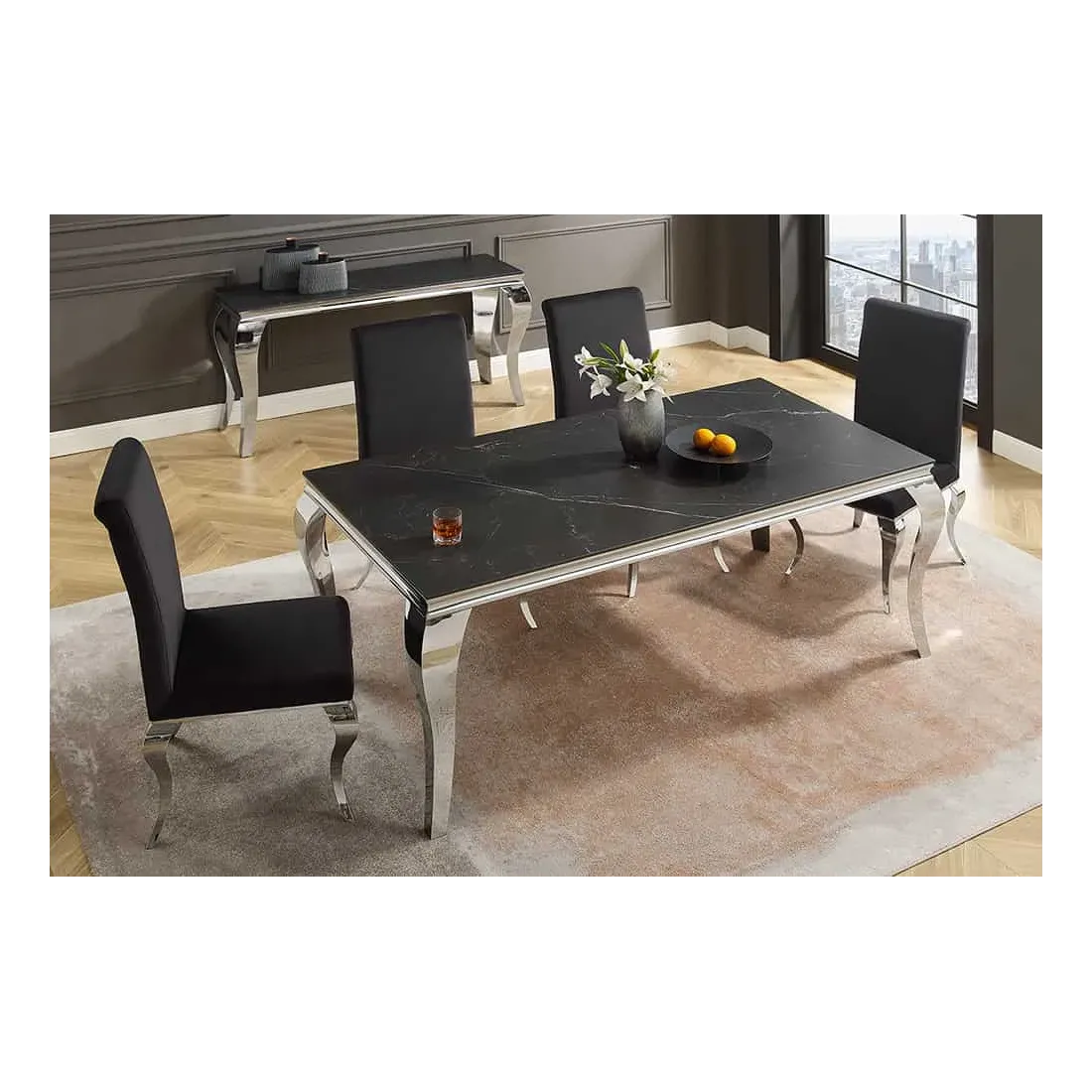 Table à manger design baroque moderne 180 cm – Céramique noir anthracite & pieds chromés
