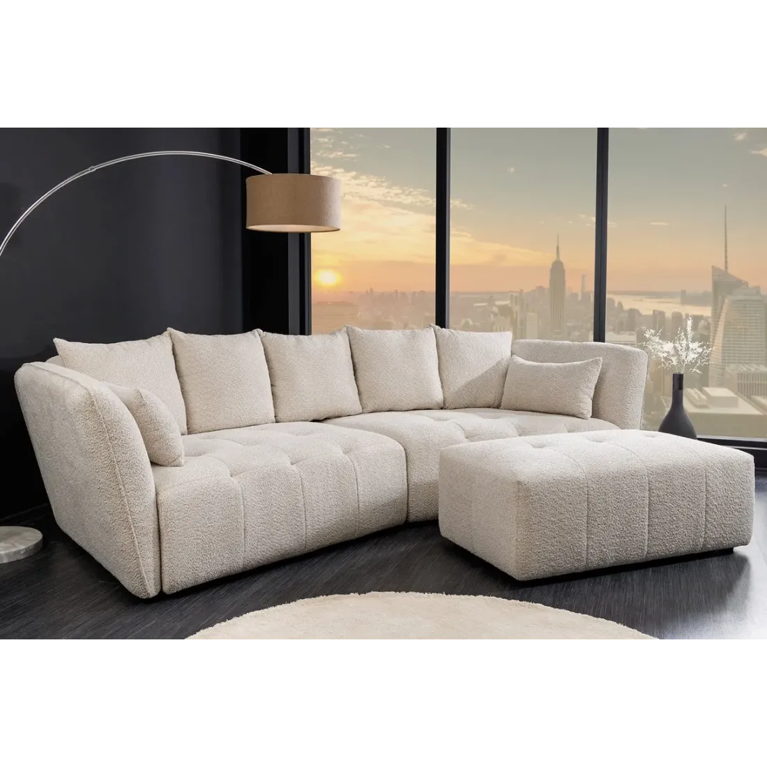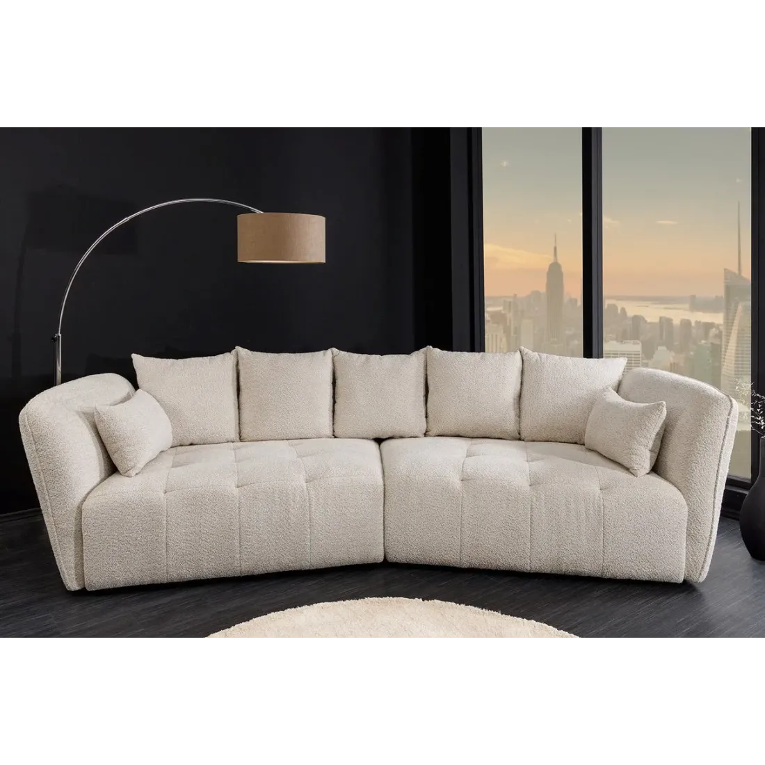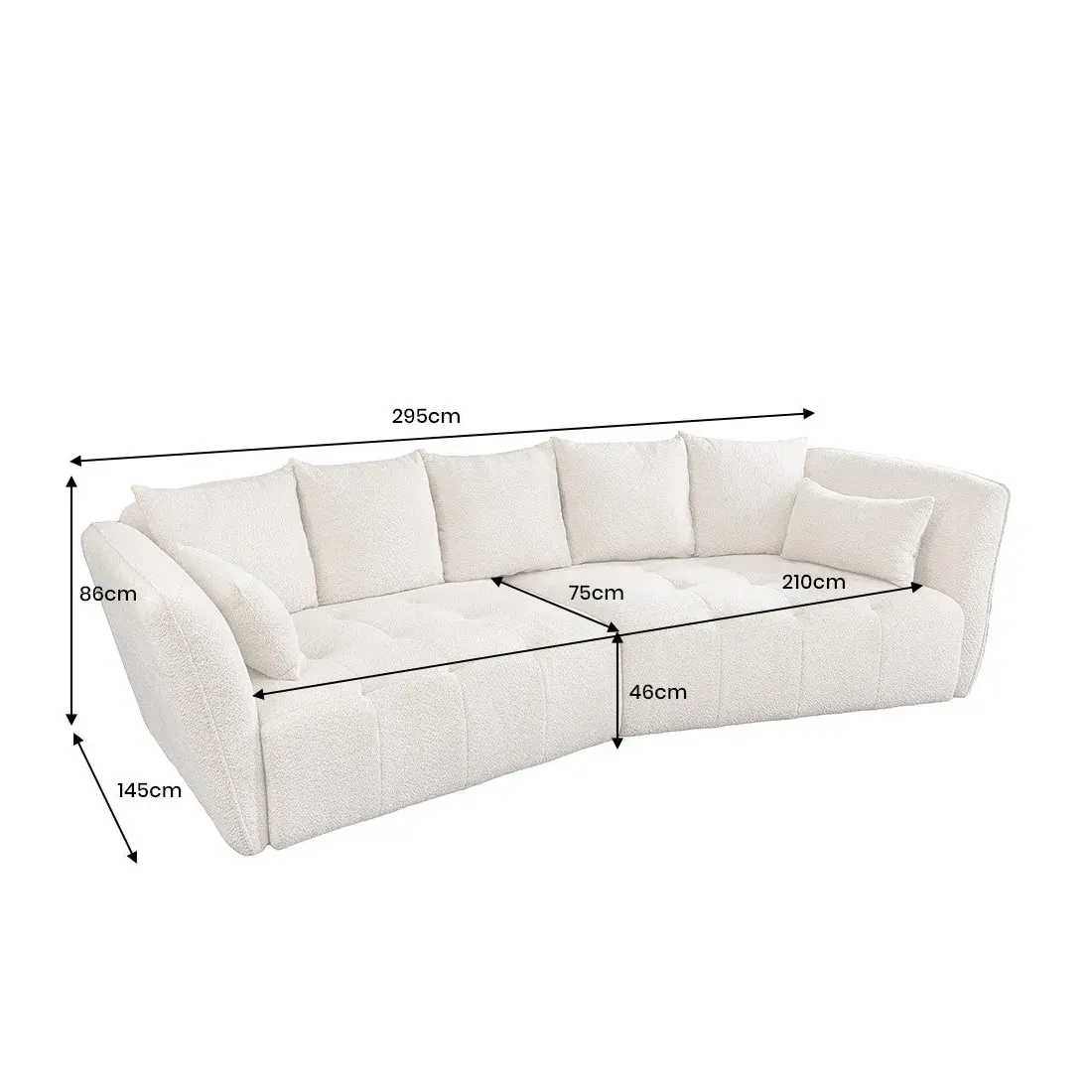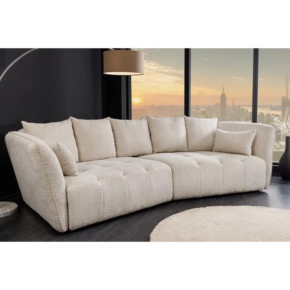 Canapé XXL ROYAL 295 cm – Bouclé champagne beige avec coussins, assise à ressorts et design moderne