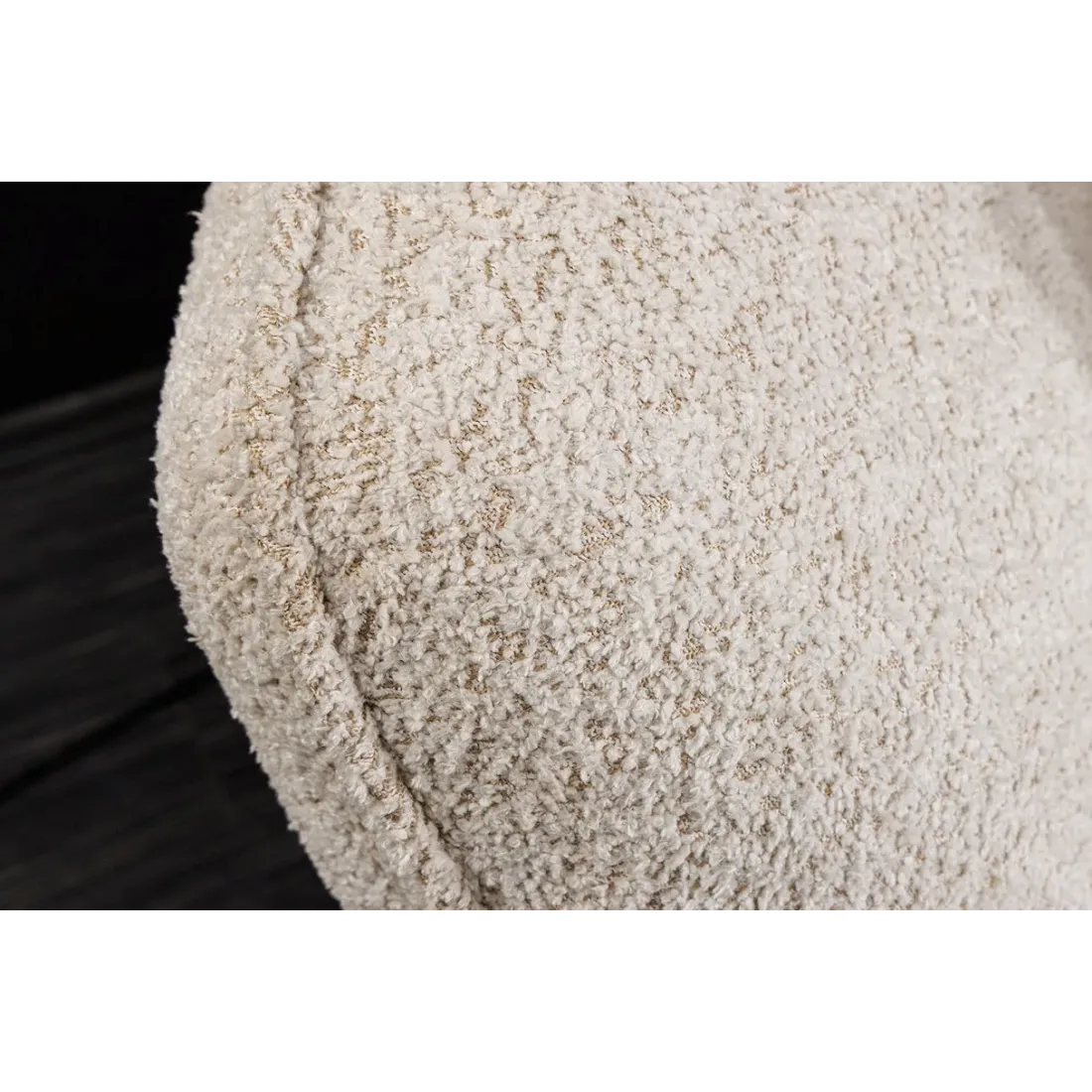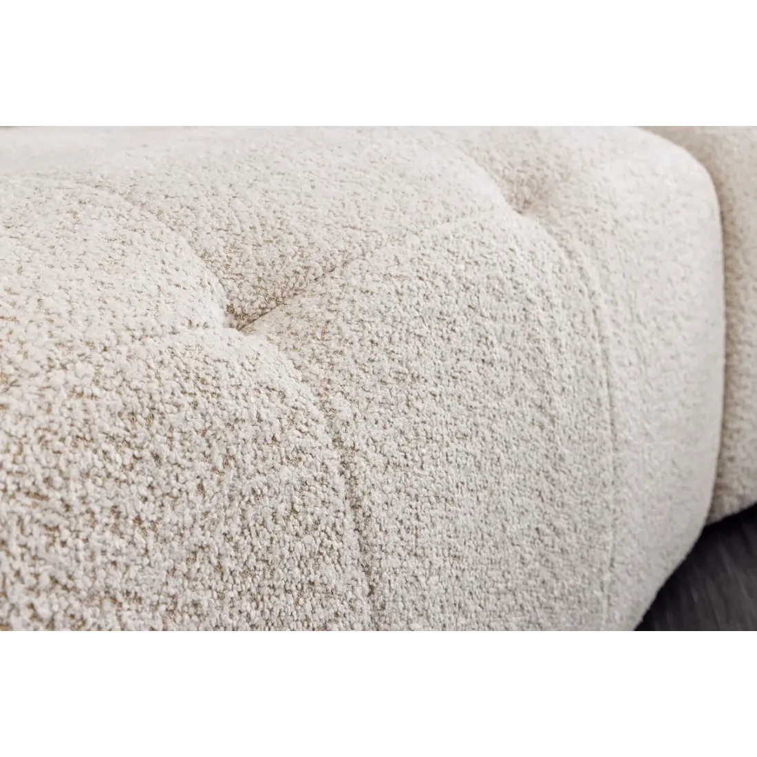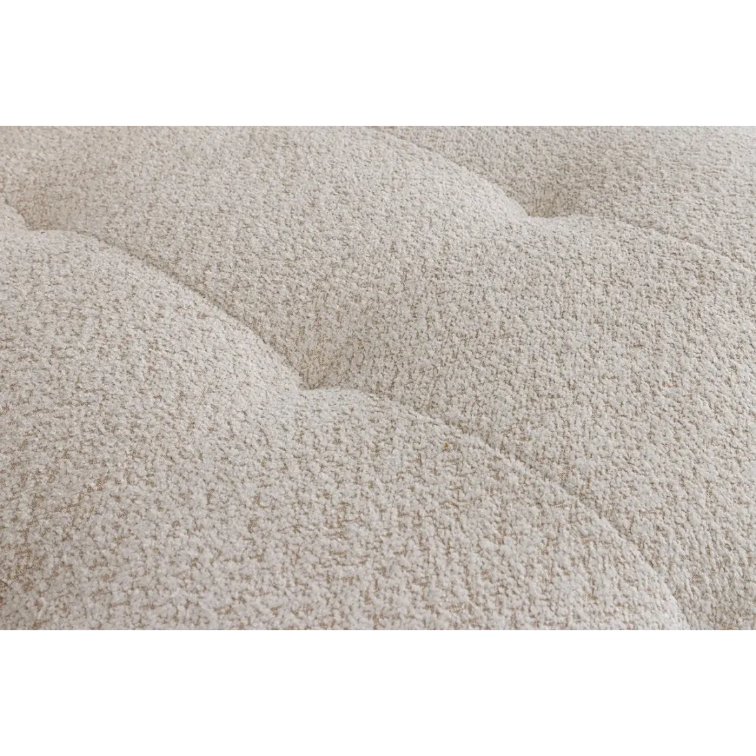 Le revêtement en tissu bouclé champagne beige apporte une touche douce et luxueuse, tandis que les pieds noirs en bois de caoutchouc assurent stabilité et discrétion.