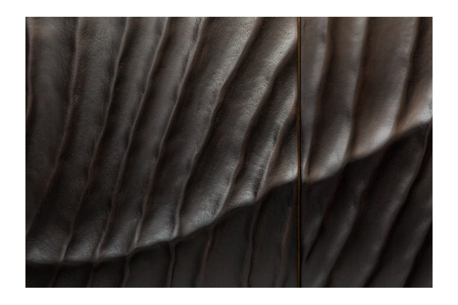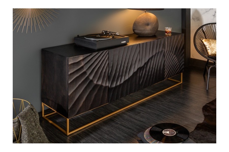 Esthétique et pratique à la fois ! Magnifique bahut design scorpion ultra-tendance ! fabriqué soigneusement en bois massif coloris noir, orné de sculptures 3D faites à la main ! avec piétement en métal solide de belle couleur dorée. Doté de 4 portes dont 4 compartiments pour vous offrir un espace de rangement important !