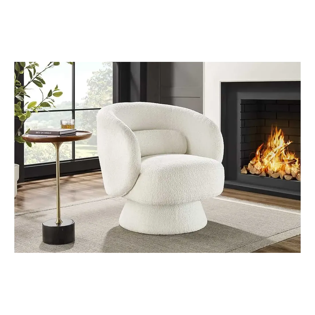 Fauteuil design BOSSA NOVA rotatif 360° – Bouclé blanc moderne et confortable